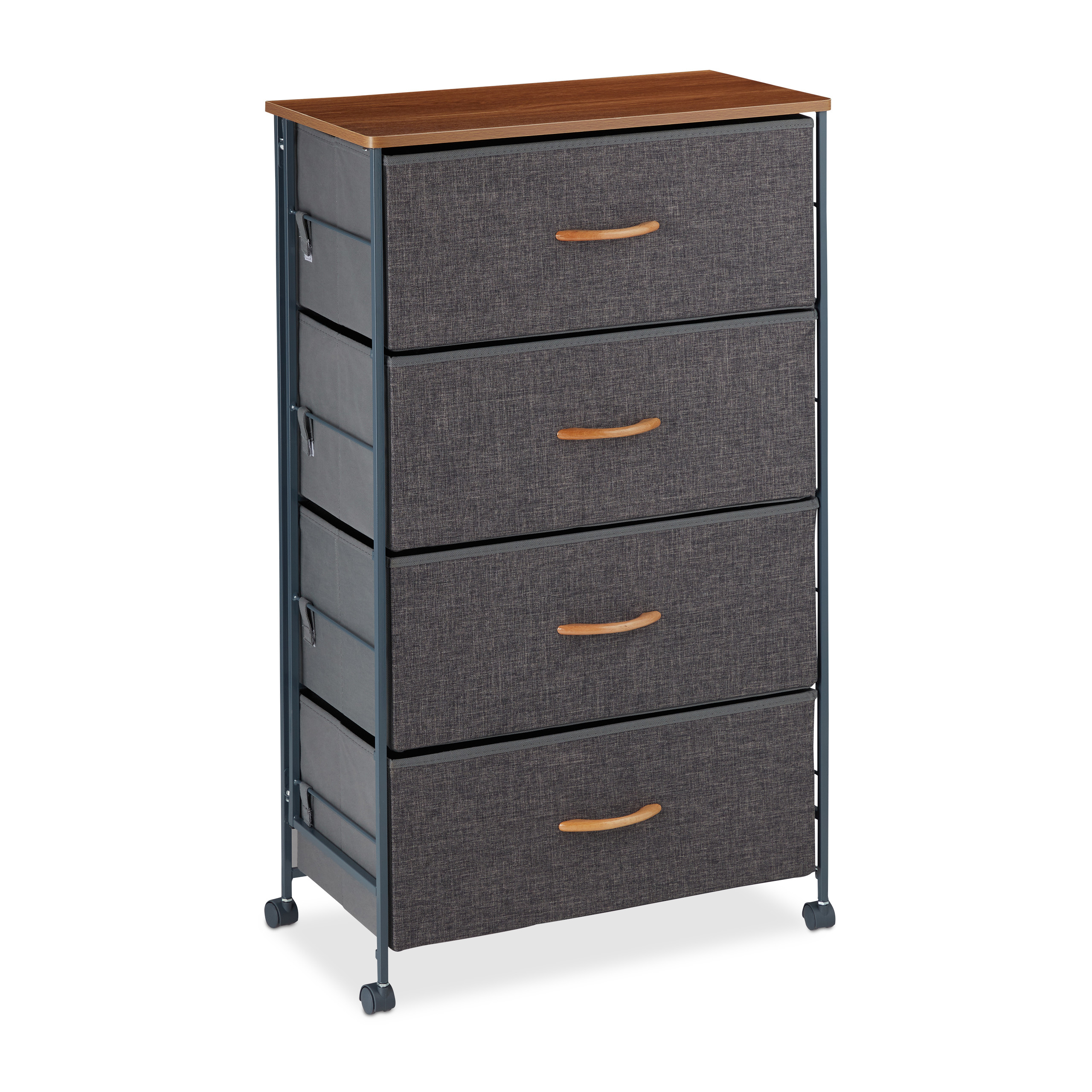 Diese stylische Stoffkommode im Retro-Design ist der perfekte Stauraum-Löser! Mit 4 geräumigen Schubladen und praktischen Griffen - alles super einfach zu ziehen. Stabiler Stahlrahmen und wasserfeste Holzplatte sorgen für Langlebigkeit. Die Oberseite eignet sich super für Pflanzen, Vasen oder deine Handtasche. Fußpolster schützen deinen Boden. Einfache Montage mit bebilderter Anleitung - alles im Lieferumfang. Perfekt für Schlafzimmer, Kinderzimmer, Flur oder Wohnzimmer. In schickem Braun passt sie zu vielen Einrichtungsstilen. Endlich Ordnung für Kleidung, Spielzeug oder Accessoires! Sieht nicht nur gut aus, sondern ist auch mega praktisch.