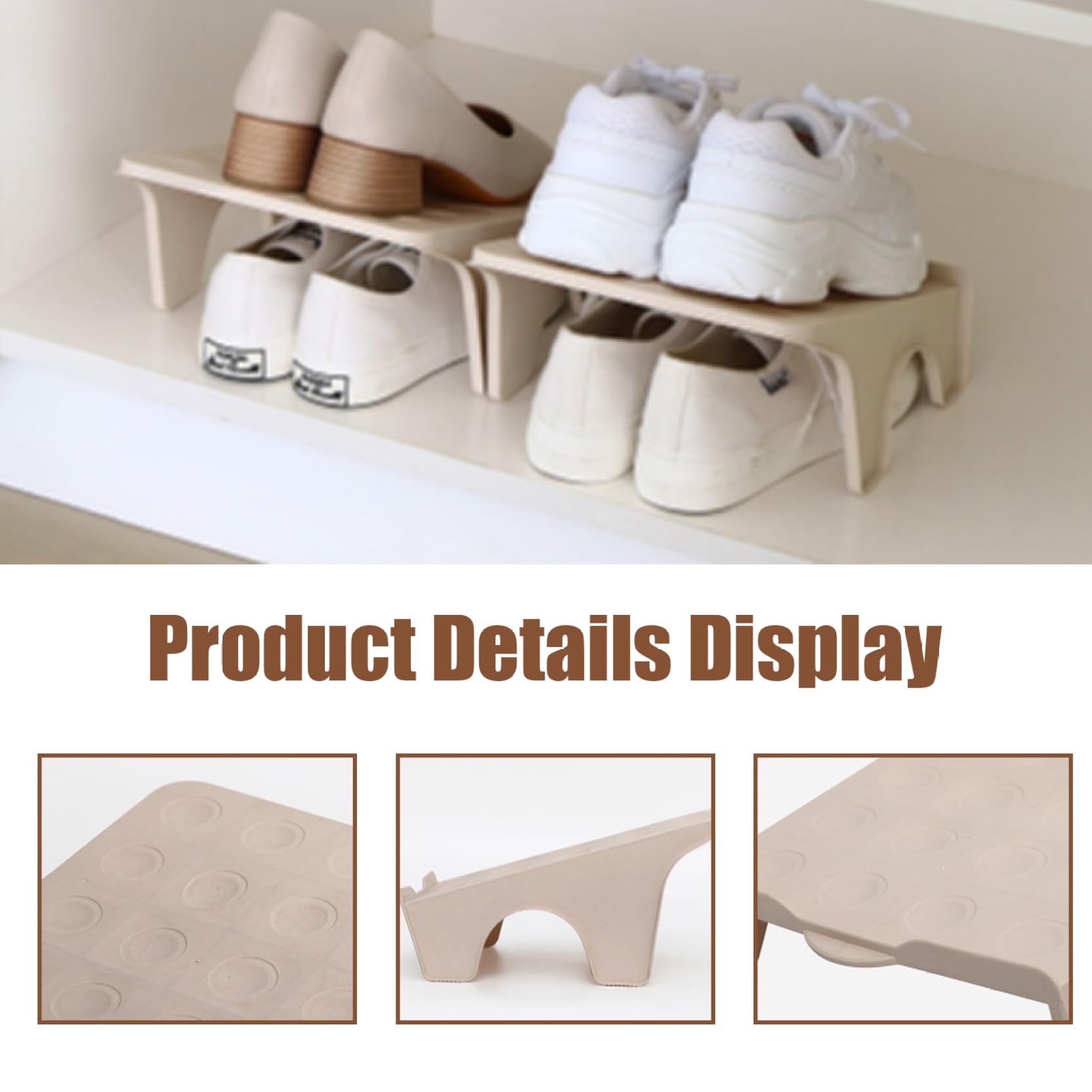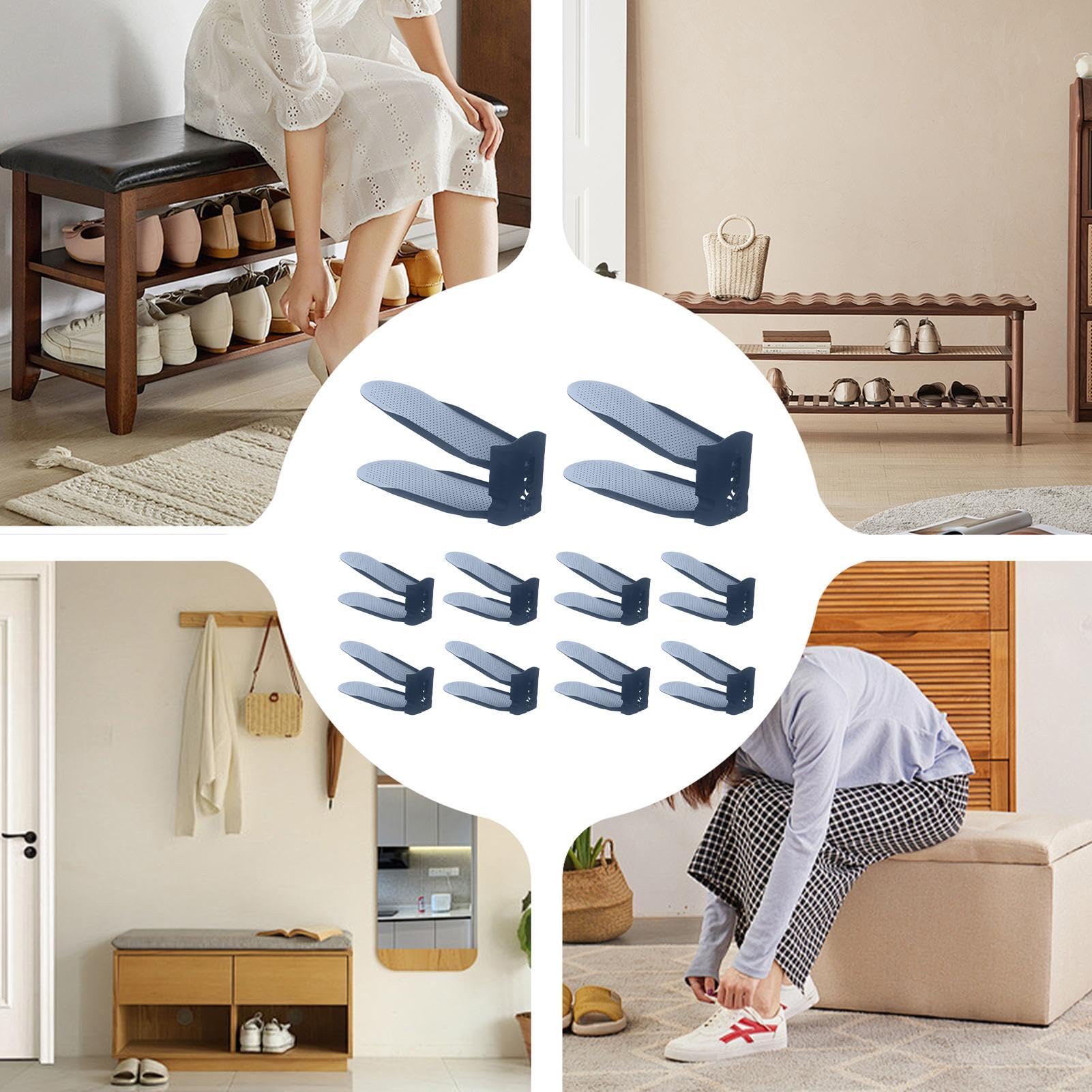 Endlich Ordnung im Schuhschrank! Dieser geniale doppelstöckige Schuh-Organizer von Trveqhk verdoppelt deinen Stauraum und bringt System in deine Schuhsammlung. Aus robustem ABS-Kunststoff gefertigt, ist er super stabil und hält jahrelang. Mit den Maßen 21x6,5cm passt er perfekt in die meisten Schuhfächer und Schränke. Das beste Feature: Die rutschfesten Pads an der Unterseite und die Noppen oben sorgen dafür, dass deine Schuhe sicher stehen und nicht verrutschen. Einfach den unteren Schuh platzieren, den Organizer daraufsetzen und den zweiten Schuh darüber stellen - schon hast du doppelt so viel Platz! Und wenn's mal dreckig wird: Der Organizer ist komplett waschbar und somit immer hygienisch sauber. Perfekt für Damen und Herren, für Sneaker, Stiefel oder Sandalen. Mach Schluss mit chaotischen Schuhbergen und hol dir diesen praktischen Helfer für mehr Übersicht in deinem Schrank!