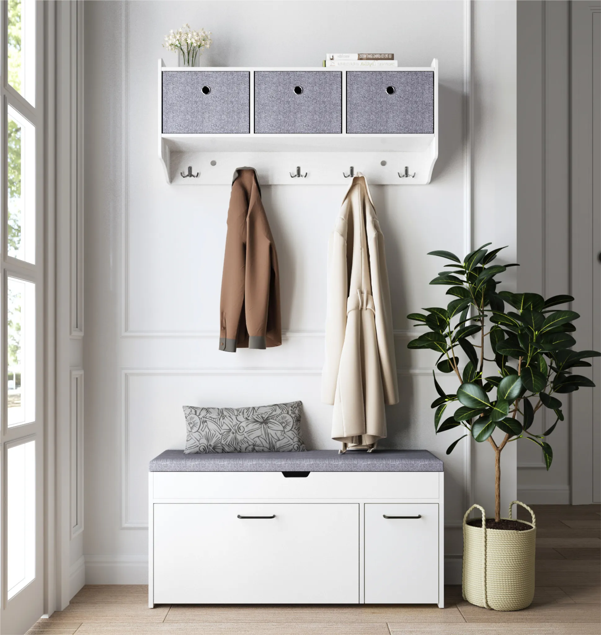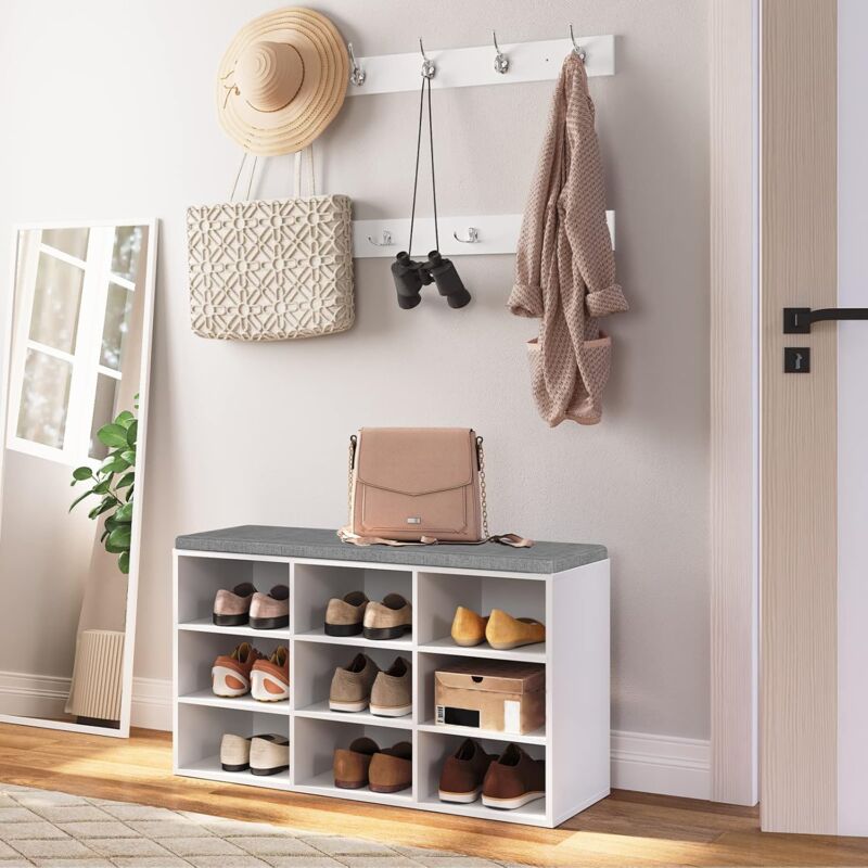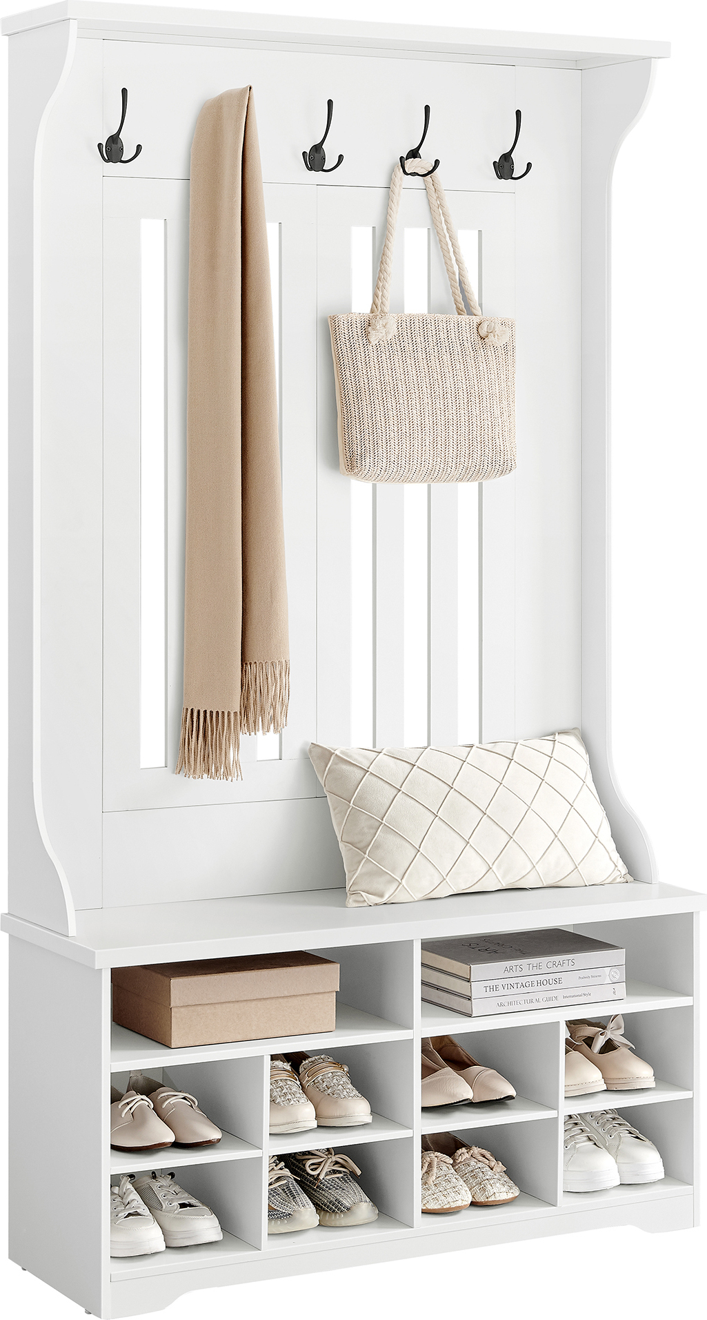 Endlich Ordnung im Flur! Dieser NNJN Garderobenständer kombiniert 6 Haken, Sitzbank und Schuhregal in einem - total platzsparend und super praktisch. Mit 120x40x191cm passt er auch in schmalere Flure und bietet trotzdem genug Stauraum. Aus robusten Spanplatten gefertigt, trägt er bis zu 198 Pfund - also absolut stabil! Die modernen Linien und die Bogenform an den Seiten sehen richtig elegant aus. Montage ist total einfach mit der bebilderten Anleitung. Perfekt für Jacken, Taschen, Schuhe und alles, was man beim Verlassen des Hauses braucht. In dezentem Weiß passt er zu jedem Einrichtungsstil. Einfach aufbauen und sich über mehr Ordnung freuen - dein Flur wird dir danken!