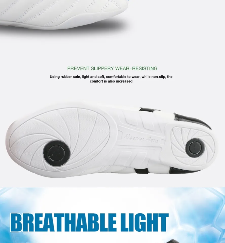 Perfekt für Kampfsport und Fitness! Diese Taekwondo-Schuhe sind super leicht und atmungsaktiv - ideal für Training und Wettkämpfe. Aus weichem PU-Leder - flexibel und bequem. Mit rutschfester Gummisohle für guten Halt. In vielen Größen erhältlich - für Erwachsene und Kinder. Ob für Taekwondo, Kung Fu, Tai Chi oder allgemeines Fitnesstraining - diese Schuhe geben dir die nötige Bewegungsfreiheit. Einfaches, klassisches Design und gute Verarbeitung - hält auch intensivem Training stand. Wenn du Wert auf Qualität und Komfort beim Sport legst - hier bist du richtig!