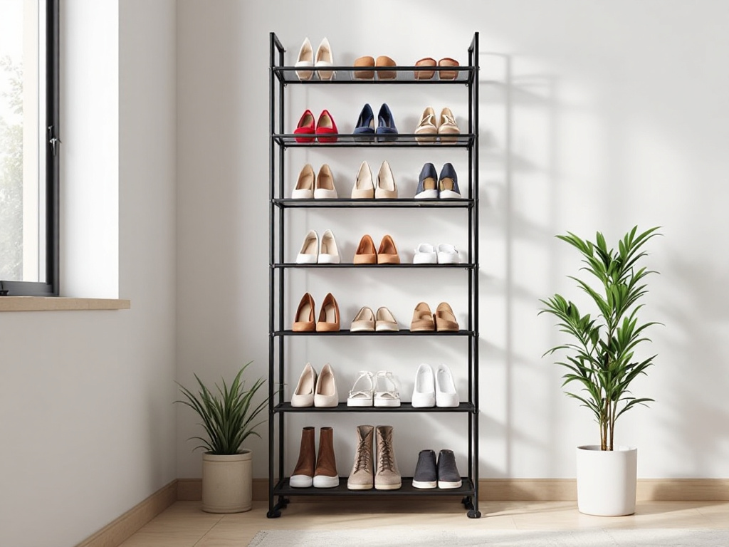 Endlich Ordnung im Schuhchaos! Dieses schlaue Schuhregal ist der Retter für jeden kleinen Flur oder engen Eingangsbereich. Mit nur 0,1m² Grundfläche findet es selbst in der kleinsten Wohnung Platz. Das coole L-förmige Design sieht nicht nur modern aus, sondern macht auch jeden Schuh gut sichtbar. Ob High Heels, Sneaker oder Stiefel - hier findet alles seinen Platz. Verfügbar in zwei Höhen: 75x19x84 cm und 75x19x106 cm. Der stabile Eisenrahmen hält auch eine komplette Schuhsammlung aus, ohne zu wackeln. Farben: Cremeweiß, Obsidian-Schwarz oder edles Gold - da findet jeder seinen Lieblingston. Perfekt für: Schmale Flure, Wohnungseingänge, Garderoben oder auch als stylischer Schuhschrank im Schlafzimmer. Einfach aufbauen und sich über mehr Platz freuen! Tipp: Die oberste Ablage eignet sich super für Deko oder Schlüssel.