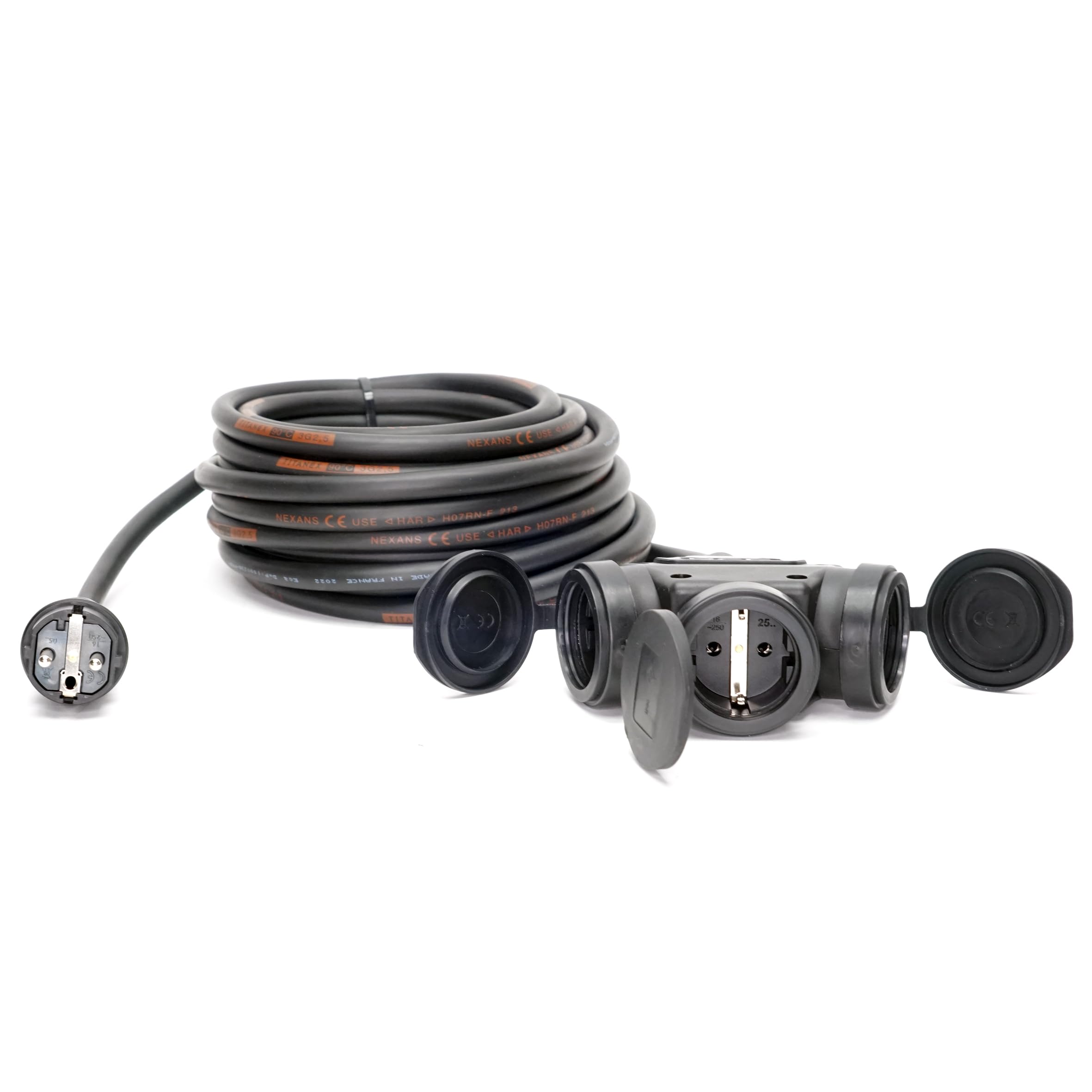 Professionelle Stromversorgung für anspruchsvolle Einsätze! Dieses hochwertige Verlängerungskabel mit CEE-Stecker und 3-fach Schuko-Verteilung ist der Alleskönner für Baustelle, Industrie und Events. Mit 3m Länge, 16A/250V und robuster Titanex H07RN-F Gummischlauchleitung. IP44 geschützt gegen Spritzwasser und Staub - perfekt für den Outdoor-Einsatz. Deutsche Qualitätsfertigung mit Markenkomponenten von PCE. Ideal für Handwerker, Event-Techniker oder Camper, die zuverlässige Stromversorgung brauchen. Egal ob bei Regen, Hitze oder auf rauen Baustellen - dieses Kabel hält, was es verspricht!