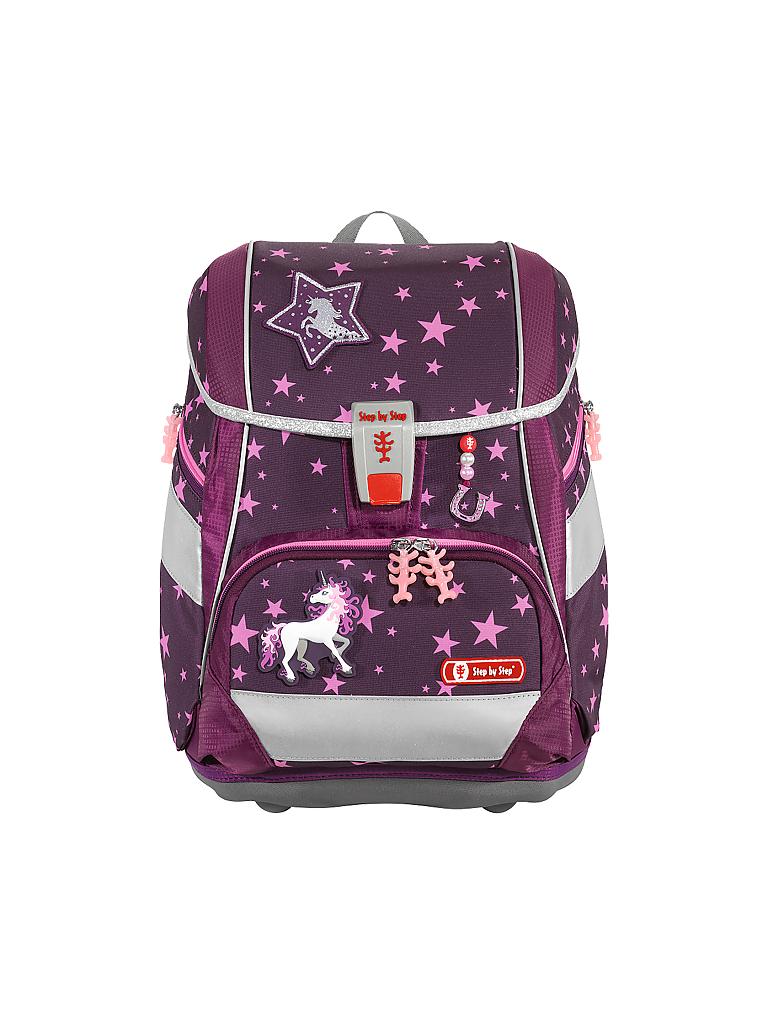 Alles für die Schule in einem Set! Dieser Step by Step Ranzen hat 19 Liter Volumen - perfekt für Bücher und Hefte. Maße 37,5x28x20cm - nicht zu groß nicht zu klein. Aus robustem Nylon - hält auch mal was aus. 6-teiliges Set - mit allem was man braucht. Süßes Einhorn Design - dein Kind wird es lieben! Leicht zu tragen - auch vollgepackt noch bequem. Perfekt für die Grundschule - von der 1. bis 4. Klasse. Macht den Schulstart zum Erlebnis!