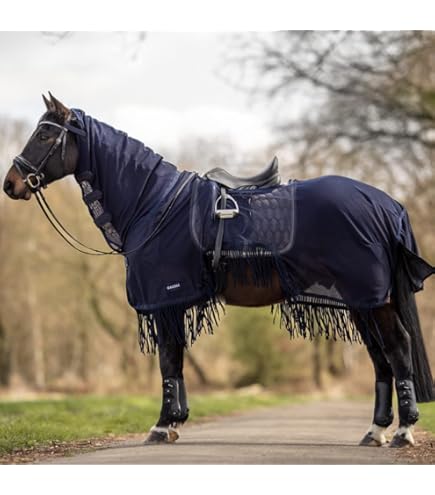 Pferdefreunde aufgepasst! Die Waldhausen Fliegen-Ausreitdecke in Nachtblau ist dein bester Freund beim sommerlichen Ausritt. Lästige Fliegen und Insekten haben keine Chance mehr, dein Pferd zu stören. Die Decke hat einen praktischen Klettverschluss am Widerrist - super einfach an- und abzulegen. Der Sattelausschnitt ist natürlich auch dabei, damit du problemlos reiten kannst. Besonders clever: Die tiefe Hinterhandkordel sorgt dafür, dass die Decke sicher an Ort und Stelle bleibt und nicht verrutscht - selbst bei lebhaften Pferden. Das klassische Design sieht einfach top aus und die Qualität stimmt! Perfekt für warme Tage, wenn die Fliegen besonders aggressiv sind. Dein Pferd wird dir danken, und du kannst dich voll auf den Ausritt konzentrieren. Einfach überziehen, festkletten und losreiten - ohne lästiges Gesumme und Gestoche!
