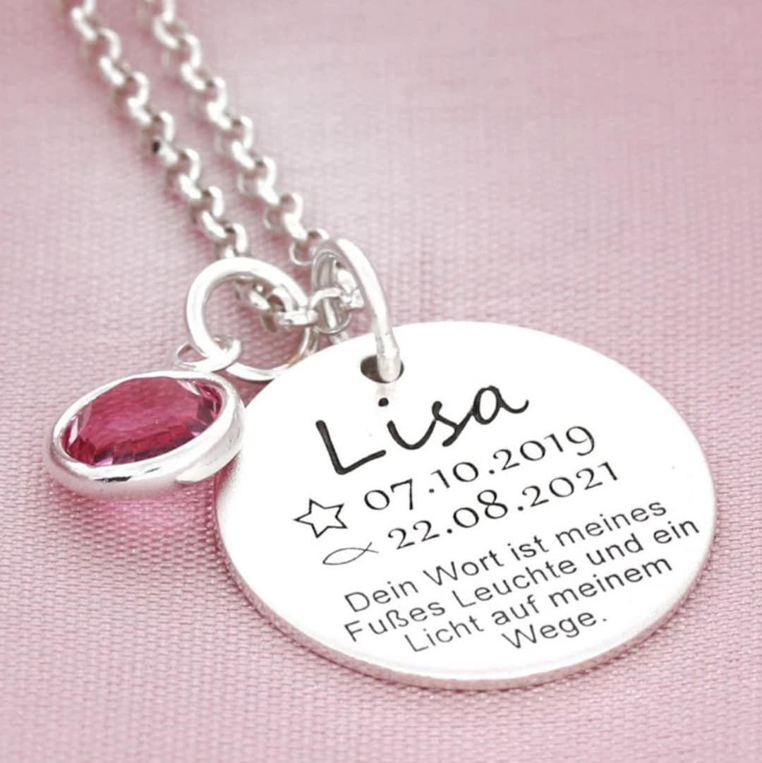 Schutzengel-Kette Mit Geburtsstein - Persönliches Taufgeschenk Für Mädchen