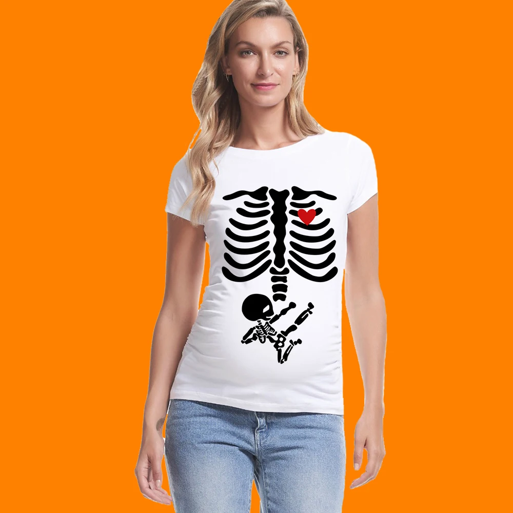 Die lustigste Art, deine Schwangerschaft zu verkünden! Dieses coole Halloween-Shirt mit Skelett-Motiv ist perfekt für die Herbstzeit. Super weich und bequem - ideal für schwangere Frauen, die ihren Babybauch stylisch präsentieren wollen.