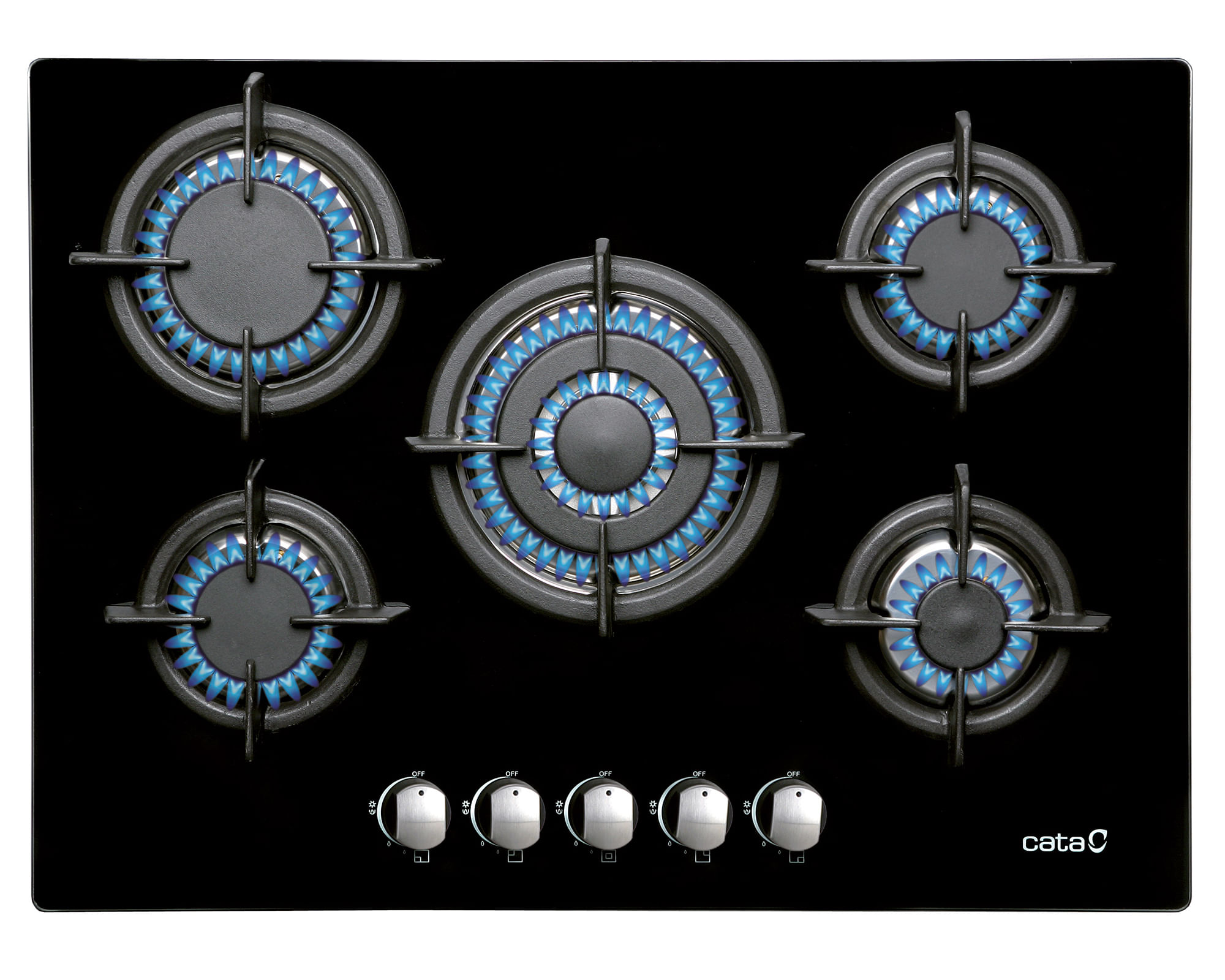 • CATA Gaskochfeld RCI631BK Schwarz - 4 Gasbrenner 8kW Mit Gusseisen Rost