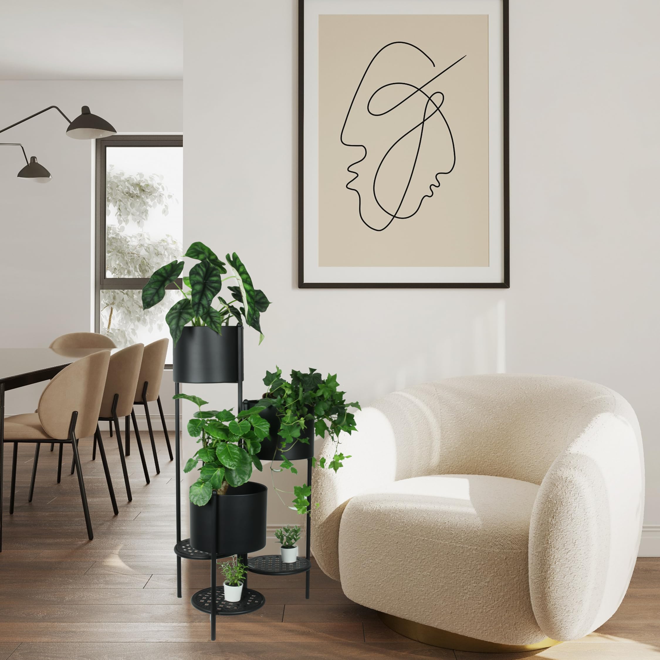 Mehr Grün für dein Zuhause! Dieser coole Blumenständer von Bamworld bietet Platz für 6 Pflanzen auf minimalem Raum. Perfekt für Ecken im Wohnzimmer oder auf dem Balkon. Aus stabilem Metall mit MDF-Böden, in schwarz. Einfach montiert und super stylisch. Als Pflanzenregal, für Kräuter oder Deko - deine Pflanzen haben endlich genug Platz!