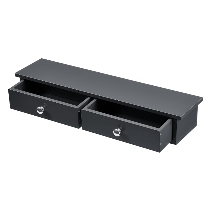 Stylisches Wandregal mit praktischen Schubladen! Dieses vielseitige Regal in Schwarz (60x25x15cm) ist der perfekte Stauraum für dein Zuhause. Aus robustem Holzwerkstoff gefertigt, ist es stabil und langlebig - hält bis zu 60 kg aus! Die beiden Schubladen (26x28x11,5cm) bieten Platz für Kleinigkeiten, während die Oberseite ideal für Deko, Bücher oder Pflanzen ist. Durch die Wandmontage sparst du wertvollen Bodenplatz und schaffst eine moderne, schwebende Optik. Perfekt fürs Wohnzimmer, Schlafzimmer, Flur oder sogar als praktischer Nachttisch-Ersatz. Einfach zu montieren - allerdings sind Schrauben und Dübel nicht im Lieferumfang enthalten. Also am besten gleich mitbestellen! Das zeitlose Design passt zu jedem Einrichtungsstil und macht überall eine gute Figur. Endlich Ordnung und Style in einem - was will man mehr?