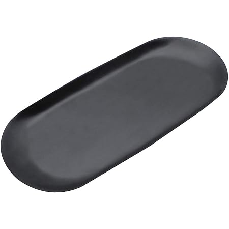 Dieses elegante schwarze Tablett aus Edelstahl ist ein echter Alleskönner für dein Zuhause! Ovales Design mit Maßen 23x9,5cm - perfekt für kleine Gegenstände. Rostfreier Stahl, extrem langlebig und kratzfest. Super einfach zu reinigen - einfach mit feuchtem Tuch abwischen, Fingerabdrücke verschwinden wie von selbst! Vielseitig einsetzbar: Als Schmuckschale für Ringe und Ketten, Desserttablett, für Kosmetikartikel, als Kerzenhalter oder für Bonbons. Das schlichte schwarze Design passt zu jedem Einrichtungsstil - ob modern, vintage oder industrial. Macht sich gut im Badezimmer, Schlafzimmer, Wohnzimmer oder auf dem Sideboard. Praktisch und dekorativ zugleich! Perfektes Geschenk für alle, die Wert auf Ordnung und Stil legen. Hol dir dieses Tablett und bringe Ordnung in deine Kleinigkeiten!