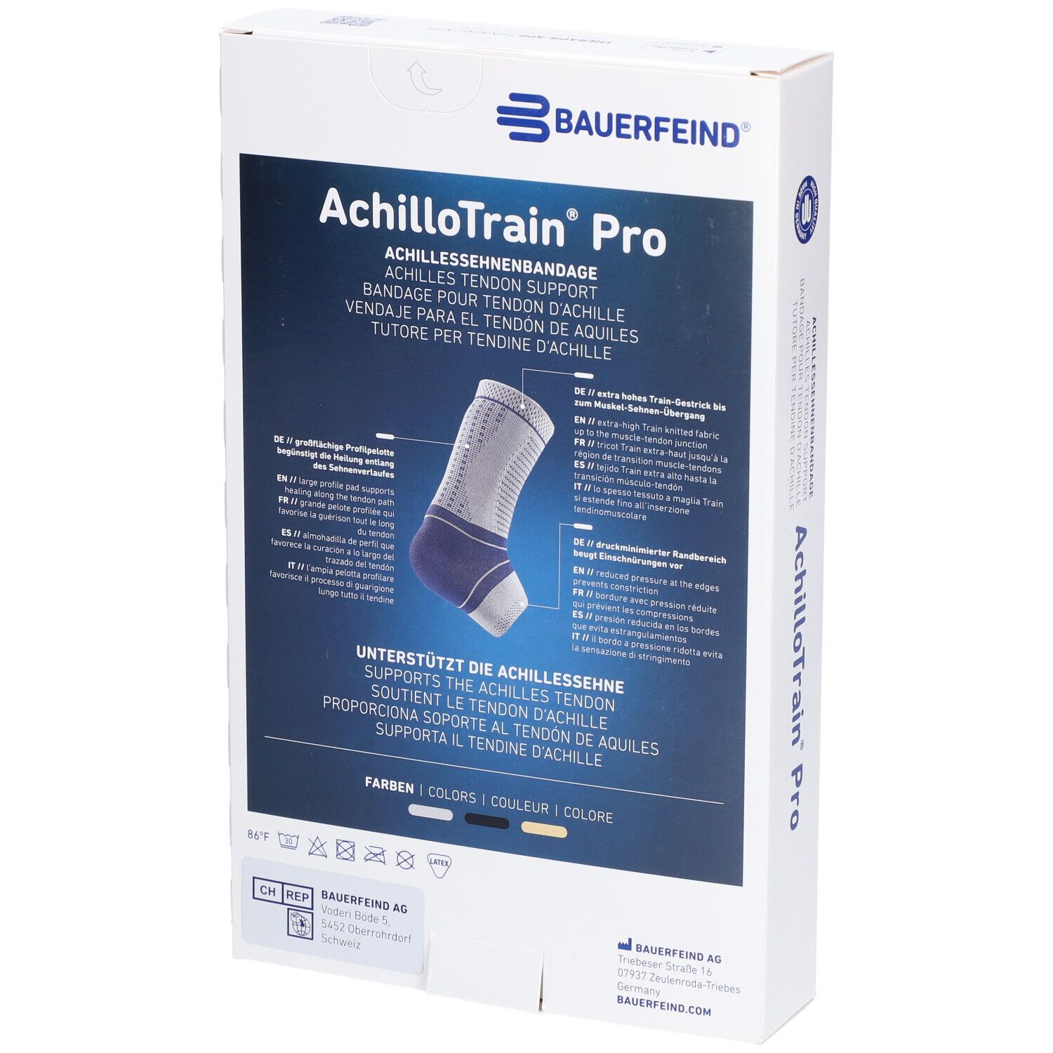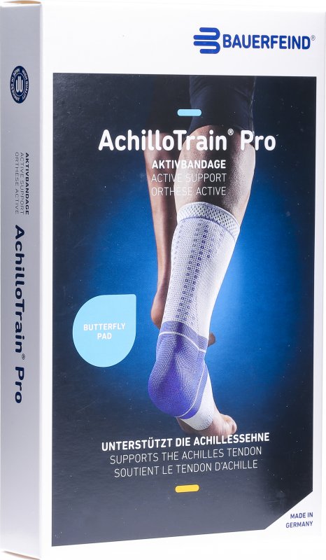 Hilfe bei Achillessehnen-Schmerzen! Die Bauerfeind AchilloTrain Bandage entlastet gezielt deine Achillessehne. Perfekt nach Sportverletzungen, Überlastung oder bei Haglundferse. Die integrierte Pelotte massiert sanft und fördert die Durchblutung. Atmungsaktives Gestrick - trägt sich angenehm und rutscht nicht. Passt unter die Socke und in normale Schuhe. Einfach anziehen und sofort aktiv sein! Größe 2 für normale Waden. Auch zur Vorbeugung beim Sport super geeignet. Deutsche Qualität von Bauerfeind - darauf kannst du vertrauen!