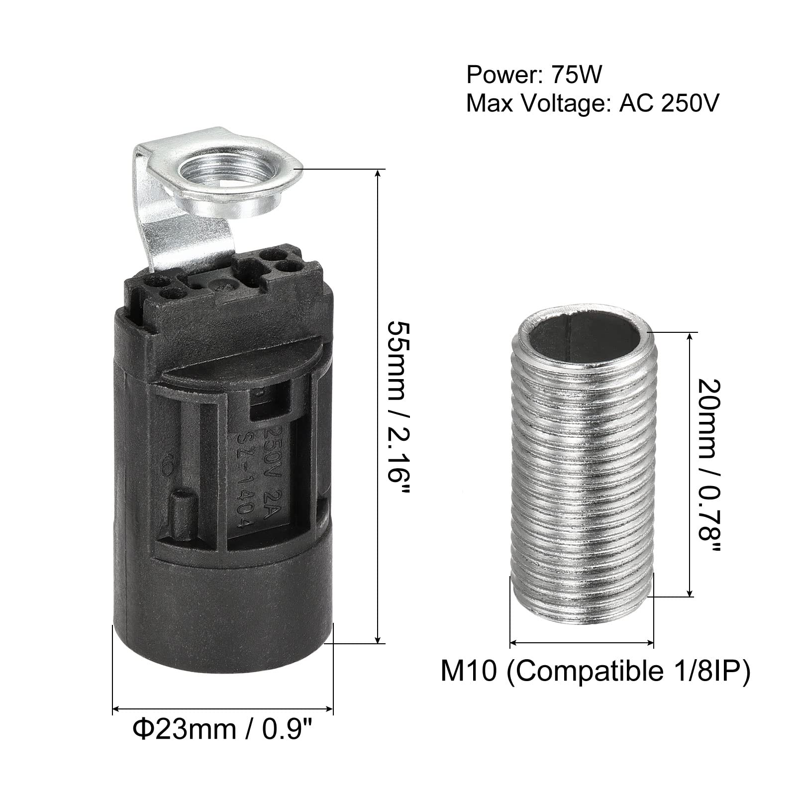 Perfekter Ersatz für deine Leuchten! Dieses 3er-Set E14-Fassungen in Schwarz ist ideal für Kronleuchter, Wandleuchten oder Kristallleuchten. Mit M10 Gewinde für einfache Montage an Lampenrohren. Aus hitzebeständigem Kunststoff und Kupfer, hält bis 75W und 250V. Maße: 23x55mm, Rohrlänge 20mm. Einfach zu installieren - Leuchtmittel reinschrauben, fertig! Super für die Renovierung alter Leuchten oder Reparaturen. Gute Hitzebeständigkeit für lange Lebensdauer. Passt zu allen E14-Birnen mit Kandelabersockel. Macht deine alten Leuchten wieder funktionstüchtig - praktisches Set für Heimwerker!