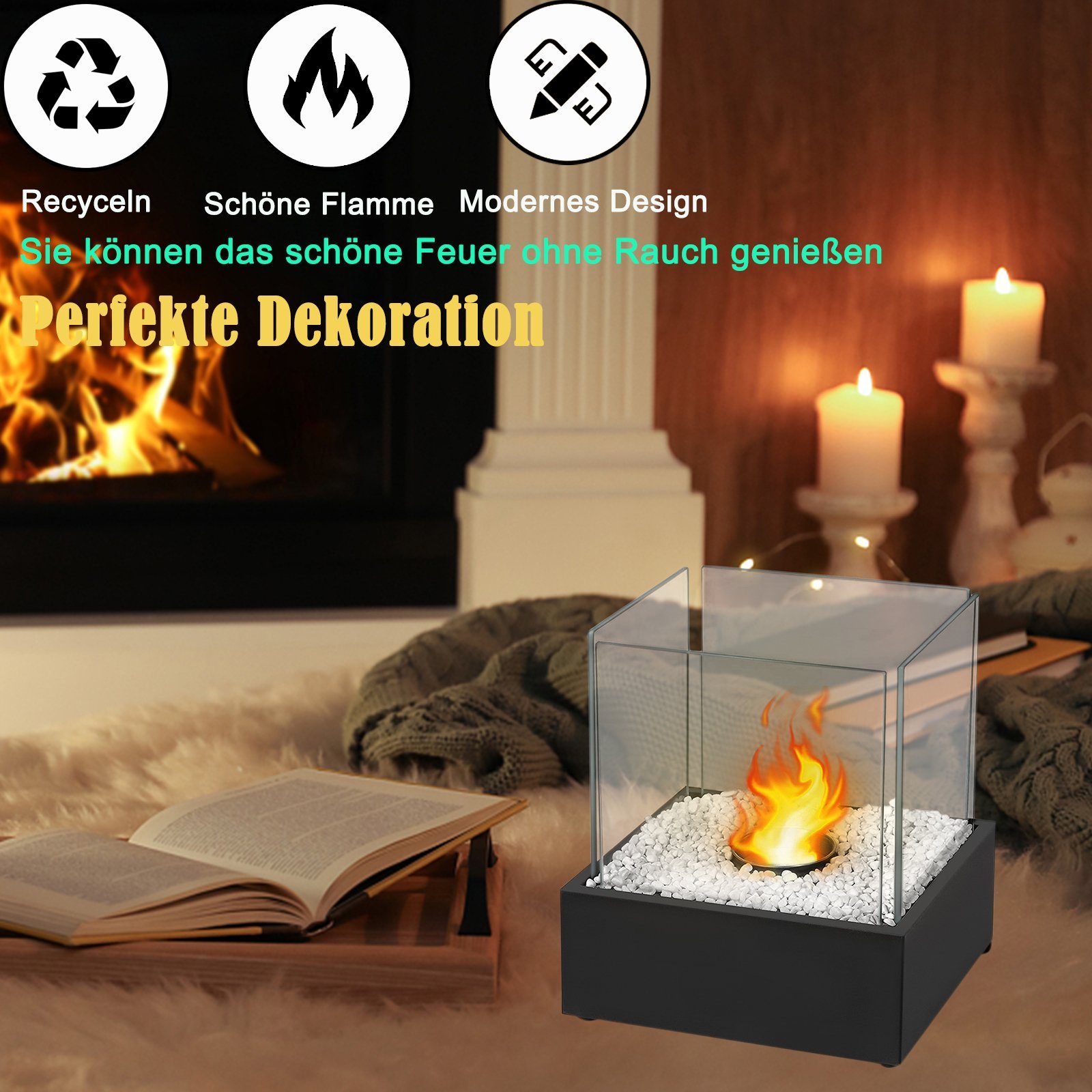 Wow, was für eine Atmosphäre! Dieser Bioethanol Tischkamin von Muntel macht jeden Tisch zum Highlight. Mit 16,5cm Durchmesser und 28cm Höhe perfekt für Esstisch, Couchtisch oder Terrasse. Komplett mit 200 dekorativen Steinen - du kannst das Design immer wieder ändern! Das Beste: völlig rauchfrei und geruchsneutral - also perfekt für Innenräume! Einfach Bioethanol rein, anzünden und die magische Flamme genießen. Brennt 1-2 Stunden, je nach Einstellung. Aus robustem Metall und Glas, sieht super modern aus. Perfekt für romantische Abende, gesellige Runden oder einfach zum Entspannen. Keine Asche, kein Ruß, kein Holz holen - einfach pure Gemütlichkeit! Mit 2 Jahren Garantie und praktischem Löschstopper. Mach dein Zuhause noch gemütlicher - dieser Kamin ist ein absoluter Hingucker!