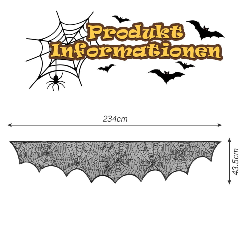 • Halloween Tischdecke Schwarz - Spinnennetz Design Für Tisch & Kamin 45x183cm
