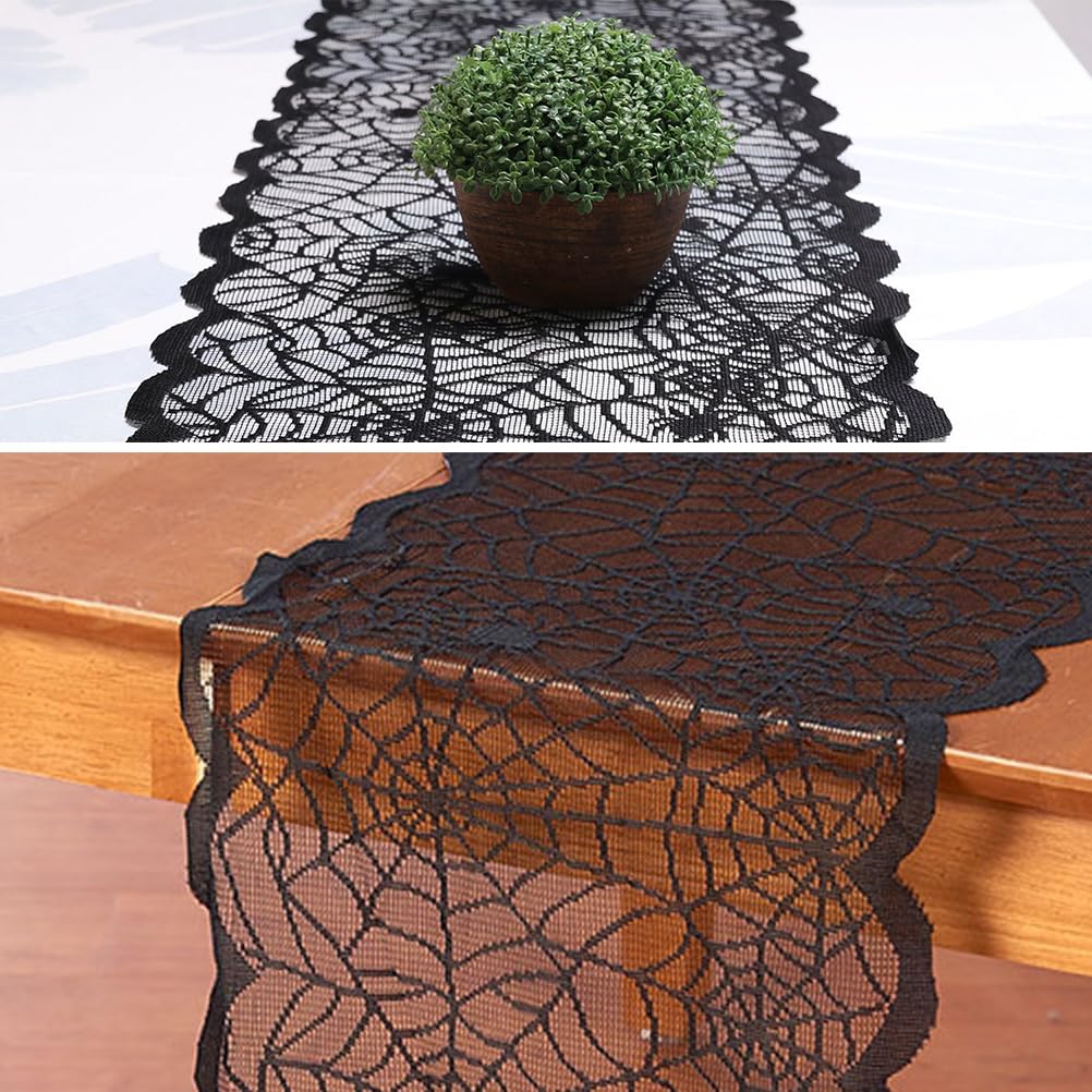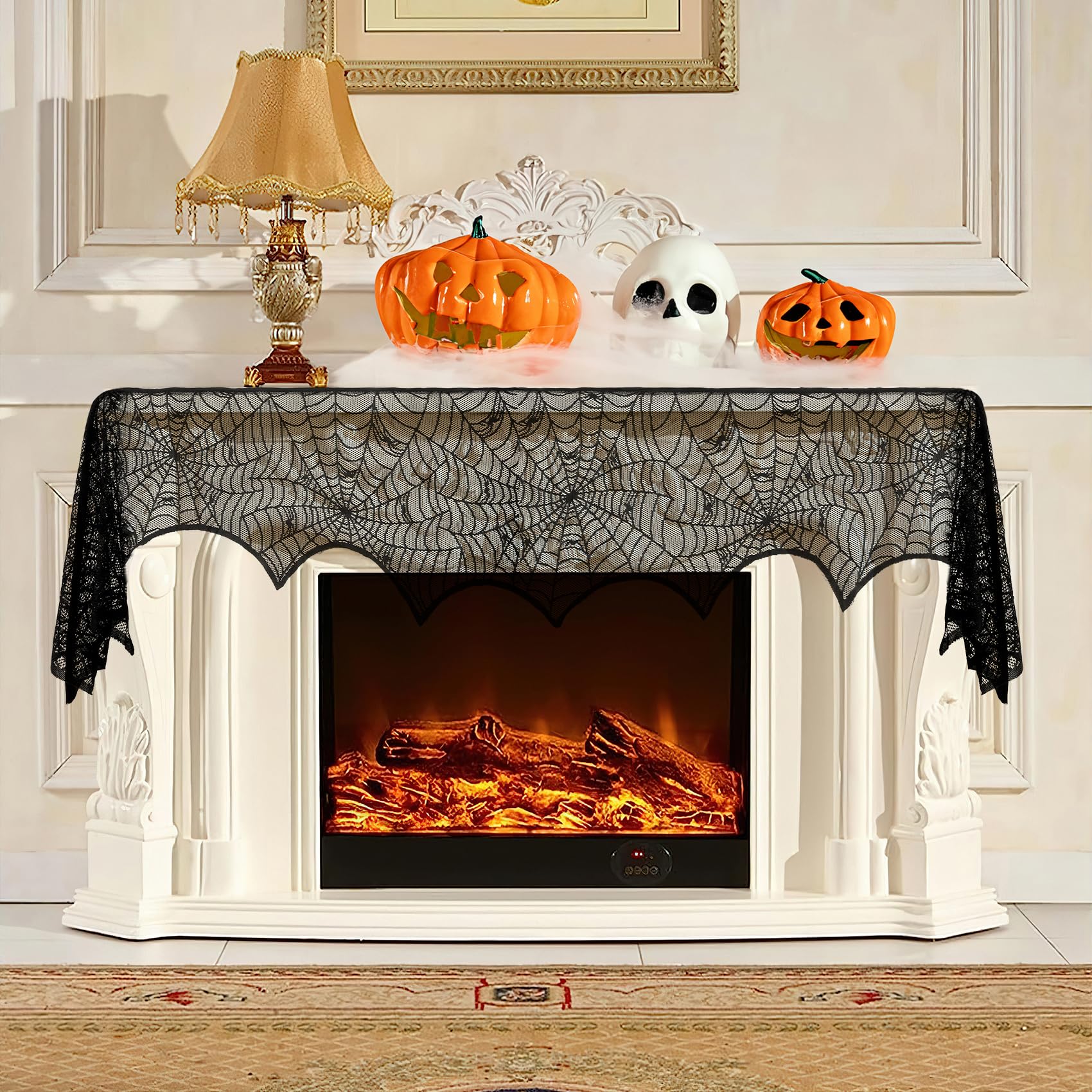 Halloween Tischdecke Schwarz - Spinnennetz Design Für Tisch & Kamin 45x183cm