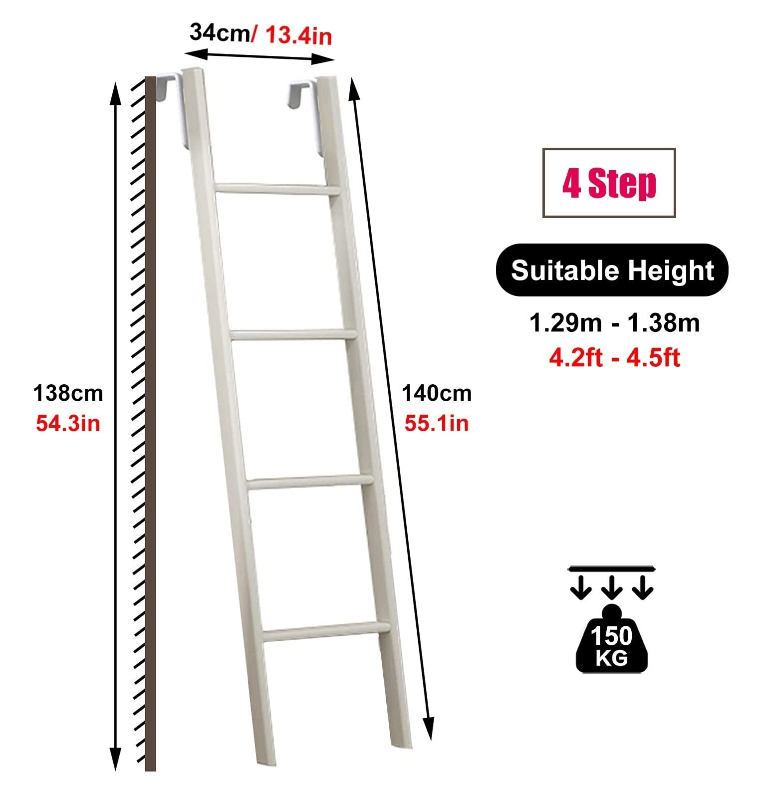 Sicher aufs obere Bett kommen - mit dieser stabilen Hängeleiter aus Stahl! Erhältlich in verschiedenen Höhen: 116cm, 130cm, 140cm oder 150cm - für jedes Etagenbett die passende Größe. Mit einer Tragkraft von stolzen 200kg hält die Leiter wirklich alles aus. Die Hakenposition ist frei einstellbar, du kannst sie also genau an deine Bettgröße anpassen. Perfekt für Kinderzimmer, Studentenwohnheime, Wohnmobile oder Wohnwagen - überall dort, wo Platz knapp ist. Die Montage ist super einfach - keine Werkzeuge nötig, einfach einhaken und fertig! Alle notwendigen Teile sind im Lieferumfang enthalten: 1x Leiter, 4x Haken und weiteres Zubehör. Die schwarze Farbe passt zu fast jedem Einrichtungsstil. Endlich eine sichere und platzsparende Lösung für den Zugang zum oberen Bett - ob für Kinder oder Erwachsene!
