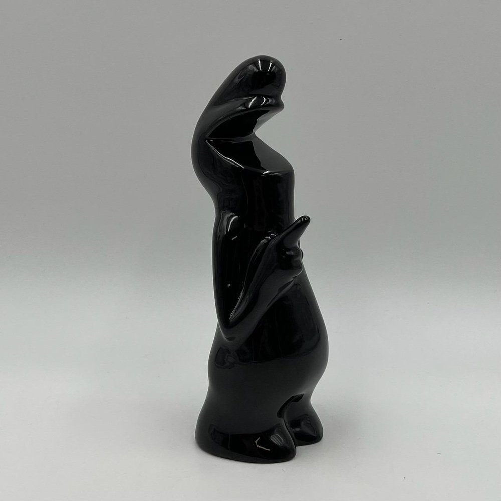 Schwarze Katzen Skulptur Aus Kunstharz - Handgeschnitzt Mit Marmor-Optik