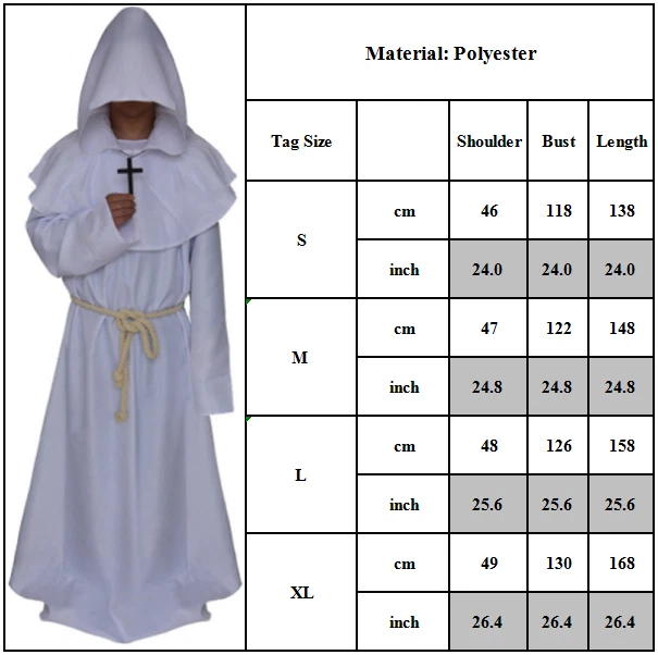 Reise zurück ins Mittelalter mit dieser authentischen Mönch-Tunika! Perfekt für Renaissance-Feste, Mittelalter-Märkte, Halloween oder Cosplay-Events. Das schwarz-weiße Design ist sofort erkennbar und verwandelt dich in einen echten Ordensbruder! Aus hochwertigem, weichem Stoff der angenehm auf der Haut liegt und sich nicht so schnell verzieht. Mit praktischer Kapuze die für die volle mittelalterliche Atmosphäre sorgt! Einfach überziehen, Kordel binden - schon bist du bereit fürs Tavernen-Leben! Das tolle an diesem Kostüm: Es passt für Frauen und Männer, also ideal für Paare oder Gruppen. Ob als frommer Mönch, mysteriöser Wanderer oder dunkler Magier - dieser Umhang gibt dir die volle Verwandlungs-Power! Leicht zu transportieren und platzsparend - ideal wenn du zu Events fährst. Mach deinen Auftritt unvergesslich mit diesem klassischen Mittelalter-Outfit!