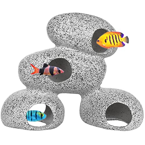 Total coole Aquarium-Höhle von fufupaw! Deine Fische werden's lieben - endlich ein richtiges Versteck, wo sie sich sicher fühlen können. Die schwarze Farbe sieht mega natürlich aus und passt in jedes Aquarium. Mit der Doppelöffnung können die Fische easy rein und rauschwimmen, kein Stress! Besonders für kleine und mittelgroße Fische perfekt. Das Material ist robust und haltbar, sowohl für Süß- als auch Meerwasser geeignet. Einfach ins Aquarium stellen, vielleicht noch etwas mit Sand oder Kies bedecken - schon ist die Höhle fertig! Deine Fische werden total neugierig sein und das Teil erkunden. Das fördert ihr natürliches Verhalten und macht sie aktiv. Weniger Stress für die Fische, mehr Spaß für dich beim Zuschauen! Ob für Guppys, Welse oder Barsche - diese Höhle ist der Hit in jedem Aquarium. Einfach mal ausprobieren, deine Fische werden's dir danken!
