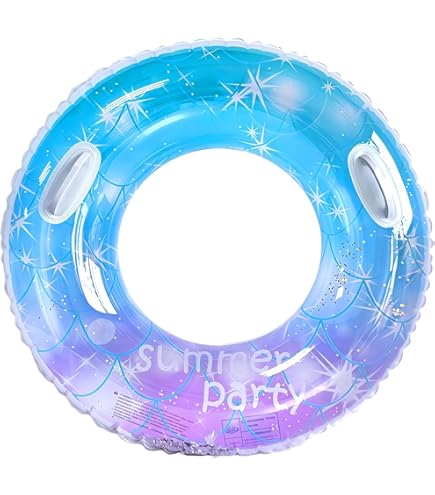 Wow, dieser Schwimmring bringt richtig Glamour ins Wasser! Die funkelnden Pailletten innen und die glänzende Oberfläche außen sorgen für echten Hingucker-Faktor im Pool, See oder Meer. Mit 50cm Durchmesser ist er groß genug für sicheres Plantschvergnügen, aber noch handlich zum Mitnehmen. Aus robustem PVC-Material, das stoßfest und langlebig ist - hält also auch mal wilderes Toben aus. Das Aufblasen geht ratzfatz, und dank der eingebauten Barriere bleibt die Luft auch sicher drin. Perfekt für Kinder (unter Aufsicht!), aber auch Teens und Erwachsene haben ihren Spaß damit. Ob für die nächste Poolparty, den Strandurlaub oder einfach nur für den heimischen Garten - dieser Ring macht jede Wasseraktivität zum Event. Und nach dem Spaß lässt er sich platzsparend zusammenfalten und verstauen. Einfach aufblasen, ins Wasser und ab geht die Post - Badespaß garantiert!