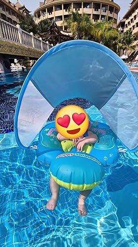 Dein Baby liebt Wasser? Dieser Schwimmring mit Sonnendach macht das Plantschen noch sicherer! Mit UPF50+ Schutz schützt das abnehmbare Dach vor der Sonne, während dein Kleines im Wasser planschen kann.