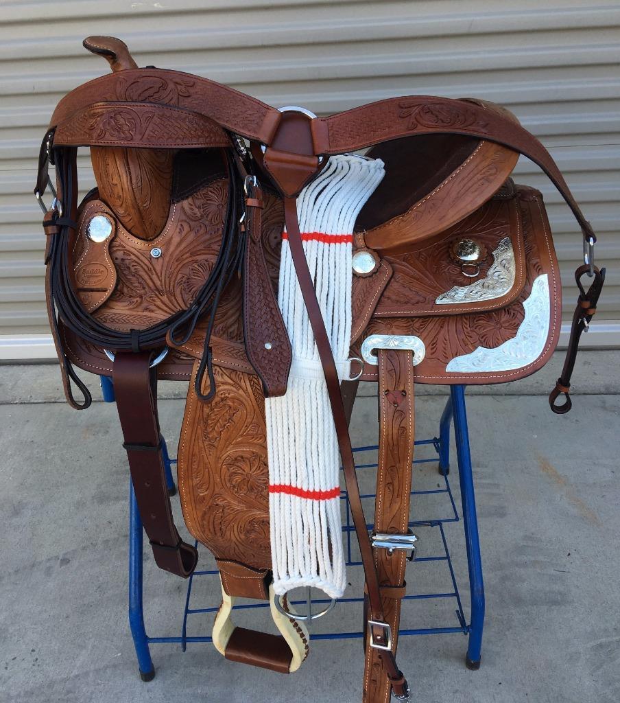 Hey du Westernreiter! Dieser Silver Horse Seattle Sattel ist einfach der Hammer! Aus echtem hochwertigem Leder gefertigt - das sieht man und fühlt man sofort. Der Sitz ist super bequem gepolstert und in schwarzem Leder gehalten, während der Rest des Sattels in einem schicken Dunkelbraun daherkommt. Die Ränder sind mit diesem eleganten griechischen Muster veredelt - sieht einfach klasse aus! Mitgeliefert werden Lederbügel und hochwertiges Latigo-Leder. Und das Beste: Du bekommst gleich einen einfachen Seilgurt und einen Sattelgurt aus Leder dazu. Perfekt für alle, die ernsthaft Westernreiten betreiben oder einfach nur den authentischen Look lieben. Der Sattel liegt super auf dem Pferd und gibt dir das richtige Western-Feeling. Einfach ausprobieren - du wirst begeistert sein! Ob für Turniere, Ausritte oder einfach nur zum Spaß - dieser Sattel macht immer eine gute Figur. Und die Verarbeitung ist so gut, dass er dir jahrelang treue Dienste leisten wird. Viel Spaß damit!