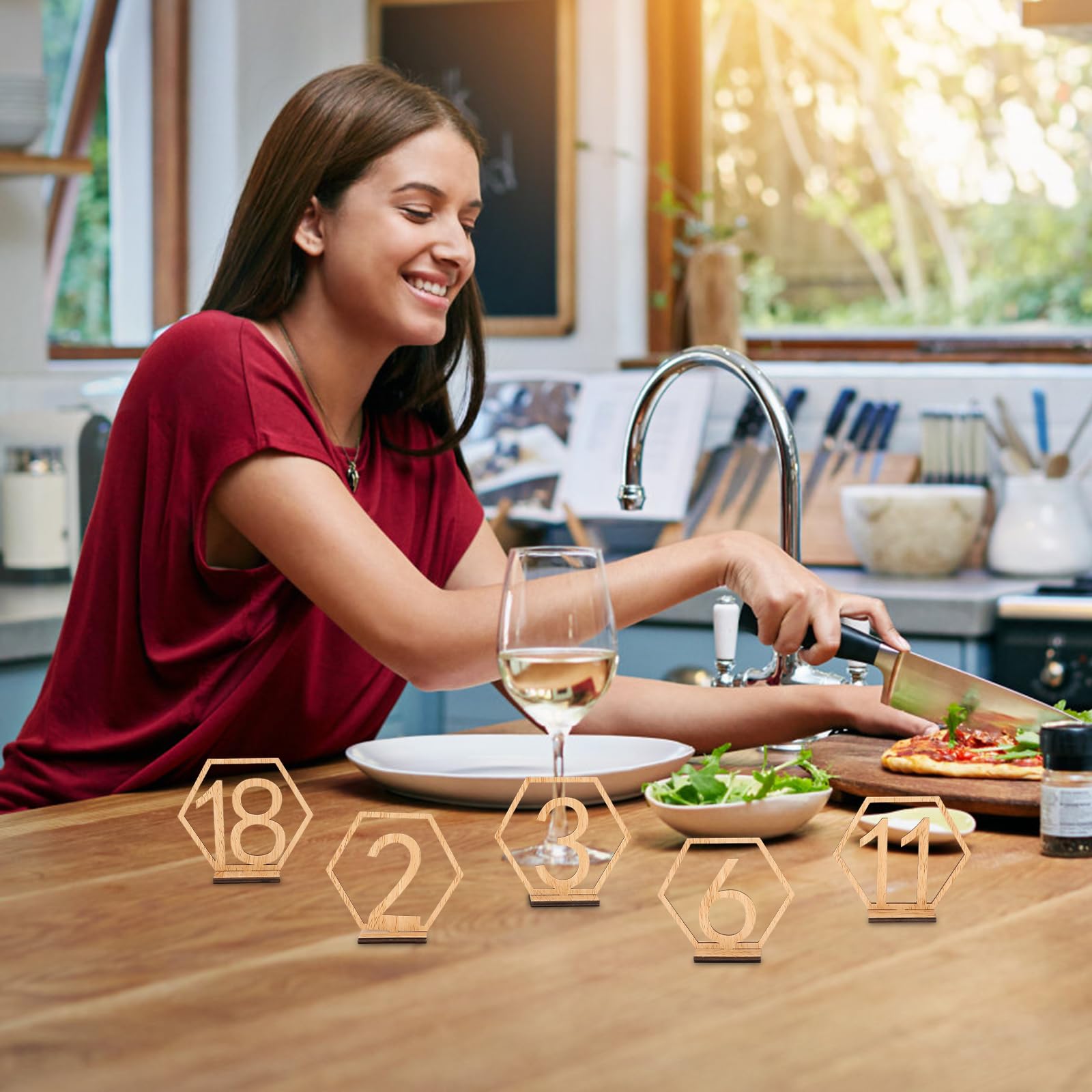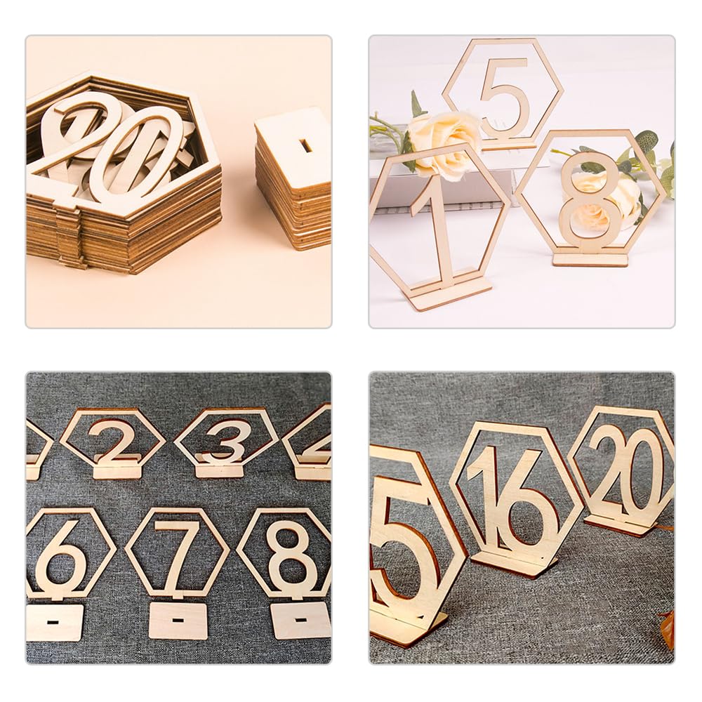 Elegante Tischnummern für deine perfekte Hochzeit! Dieses Set mit 20 sechseckigen Holz-Tischnummern (1-20) verleiht deiner Feier einen touch von Vintage-Charme. Jedes Schild ist ca. 11x9,5cm groß und zeigt wunderschöne Spitzenmuster im Holz. Mit praktischem Halter - einfach aufstellen und die Sitzordnung ist klar. Aus stabilem Holz gefertigt, halten die Nummern lange und können nach der Feier wiederverwendet werden. Perfekt nicht nur für Hochzeiten, sondern auch für Empfänge, Geburtstage und andere besondere Anlässe. Mach deine Tische zu einem echten Hingucker und hilf deinen Gästen, schnell ihren Platz zu finden. Romantik und Funktionalität in einem!