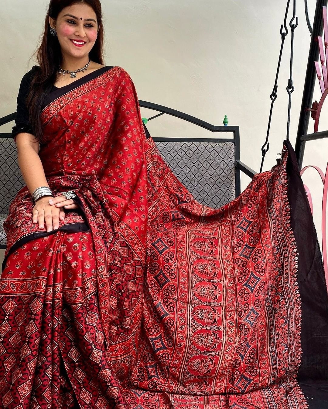 Hallo liebe Fashion-Fans! 👗 Diese wunderschöne TreegoArt Saree aus Baumwolle-Seide ist einfach traumhaft! Mit ihrem eleganten Design und dem himmelblauen Farbton ziehst du garantiert alle Blicke auf dich!