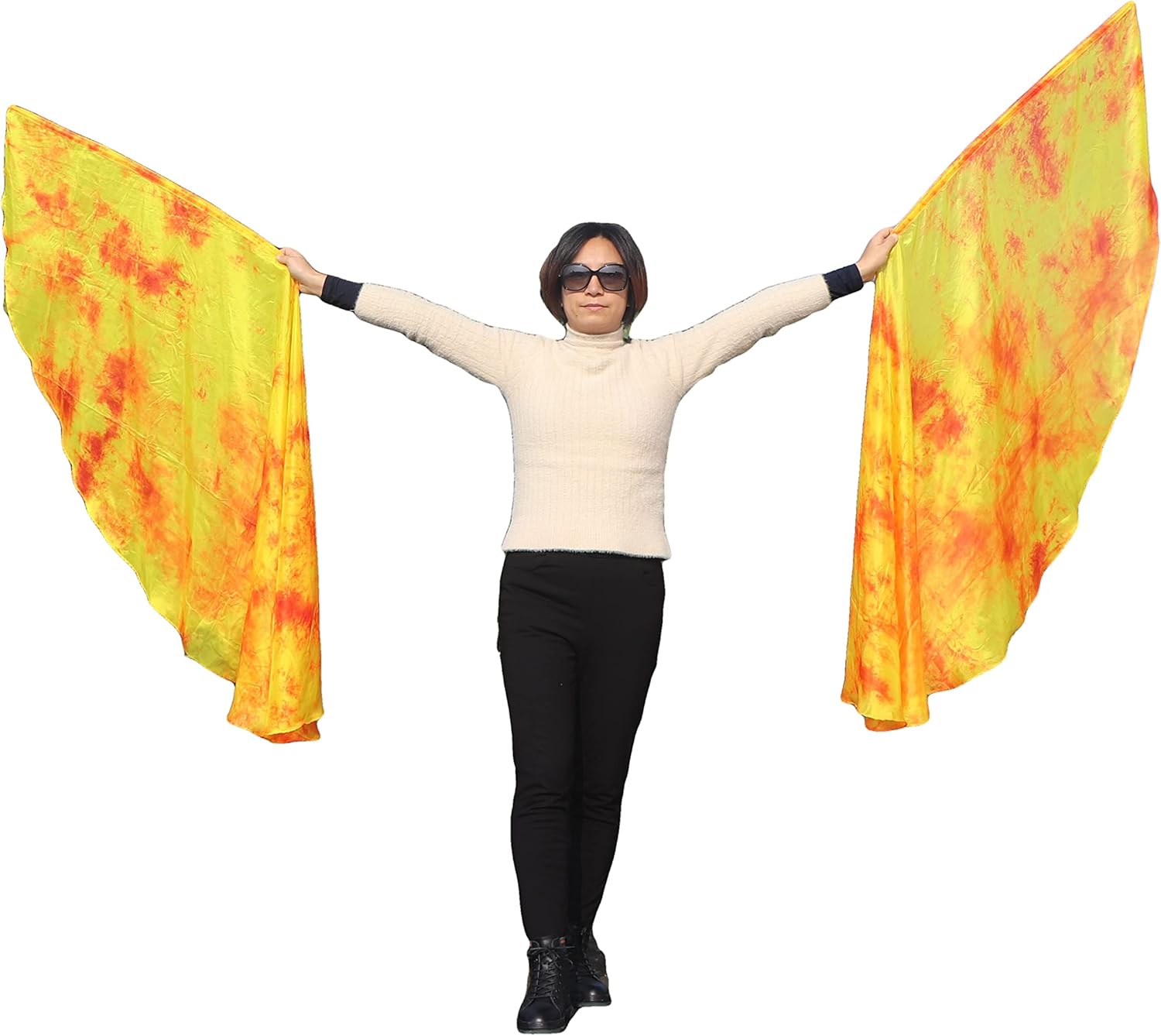 Wow, dieser Seidenschleier-Poi ist einfach magisch! Mit 180x90cm aus echter 5 mommes Seide - total leicht und schwebend. Handbemalt in leuchtenden Farben mit weichen Übergängen - sieht einfach atemberaubend aus wenn er durch die Luft wirbelt. Komplett mit Edelstahl-Kettenseil und Ball, plus praktischer Tragetasche. Einfach zusammenzubauen: Ball in die Seidentasche stecken, Seil durchs Loch und verbinden. Die 3 Drehgelenke sorgen für super flüssige Drehungen. Perfekt für Bauchtanz, Flow Art oder einfach zum Spielen. Wichtig: Nach dem Auspacken mit Dampf bügeln damit die Falten rausgehen und der Stoff richtig schön fließt. Und Vorsicht vor Wasser - lieber trocken halten! Damit zauberst du hypnotische Bewegungen und bringst sowohl Tänzer als auch Publikum zum Staunen. Einfach ausprobieren und in die Welt des Pois eintauchen!