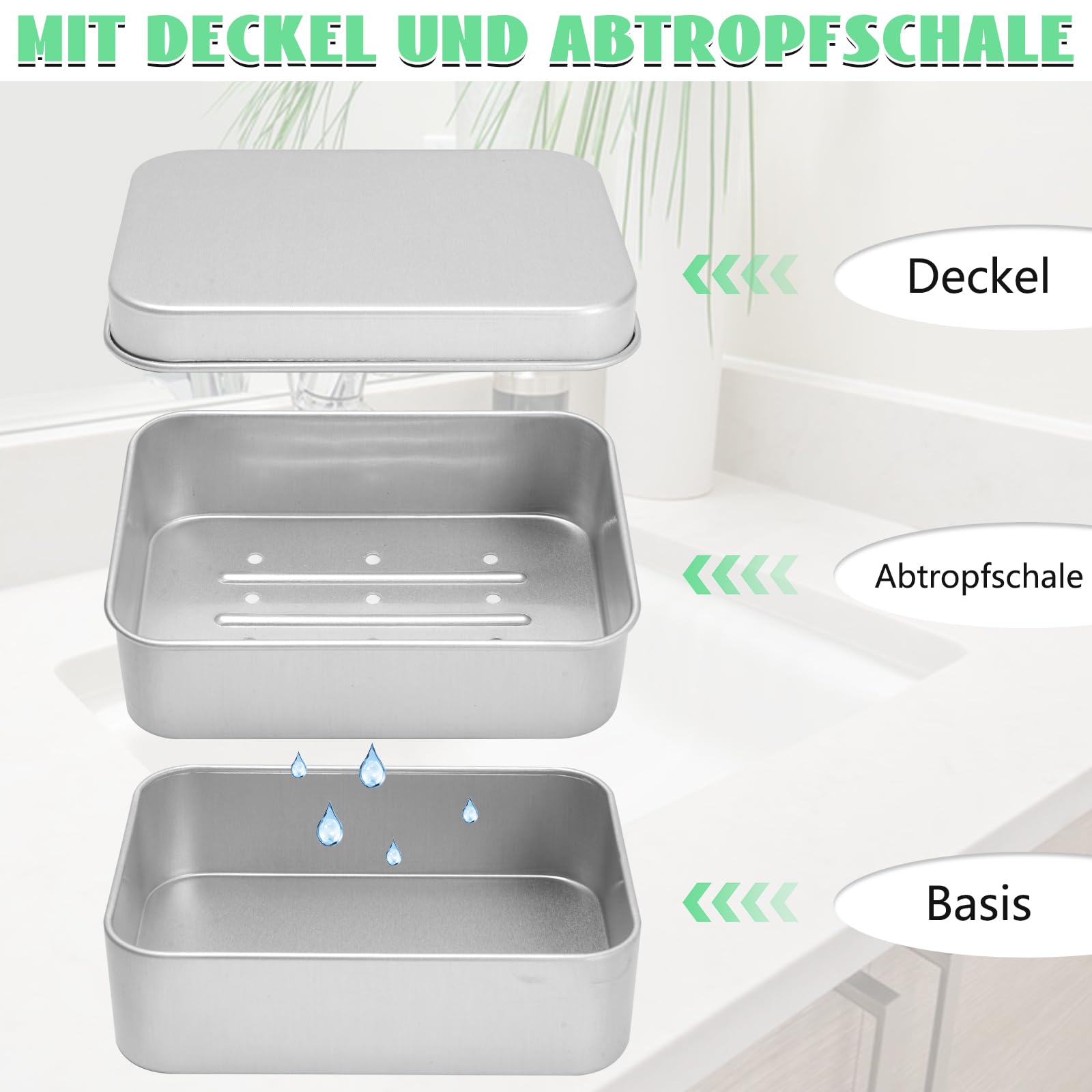 Mann, diese Alu-Seifendosen sind genau das, was ich immer gesucht habe! Im Set bekommst du zwei praktische Dosen aus hochwertigem Aluminium, die nicht rosten und super langlebig sind. Jede Dose hat drei Teile: einen dichten Deckel, eine Abtropfschale und das Hauptgehäuse. So trocknet deine Seife schnell und bleibt frisch - kein matschiger Seifenrest mehr! Mit 96x68x30 mm passen fast alle handelsüblichen Seifen rein. Nur 42 Gramm leicht - perfekt für unterwegs. Ob im Rucksack beim Camping, im Fitnessstudio oder im Hotel - deine Seife ist immer sicher verpackt. Und das Beste: Die Dosen sind vielseitig verwendbar! Du kannst darin nicht nur Seife transportieren, sondern auch festes Shampoo, Tee, Schmuck oder kleine Kosmetikartikel. Einfach auseinandernehmen und mit warmem Wasser reinigen - keine chemischen Reiniger nötig. Übrigens: Für Flüssigkeiten sind sie nicht geeignet. Einfach ein geniales, umweltfreundliches Produkt ohne Plastik!