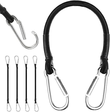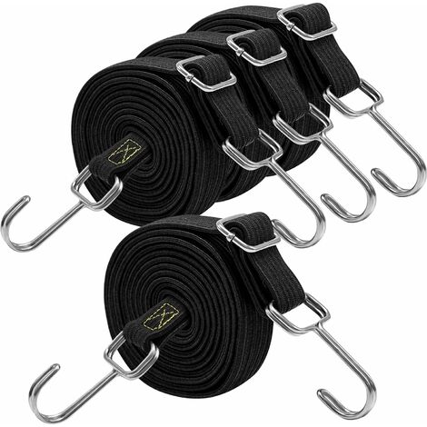 Einfach verstellbar, passen sich jeder Größe an. Kein Gefummel mit zu kurzen oder zu langen Seilen. Die robusten Haken halten bombenfest, und das elastische Material gibt bei Stößen nach - deine Ladung bleibt sicher.
