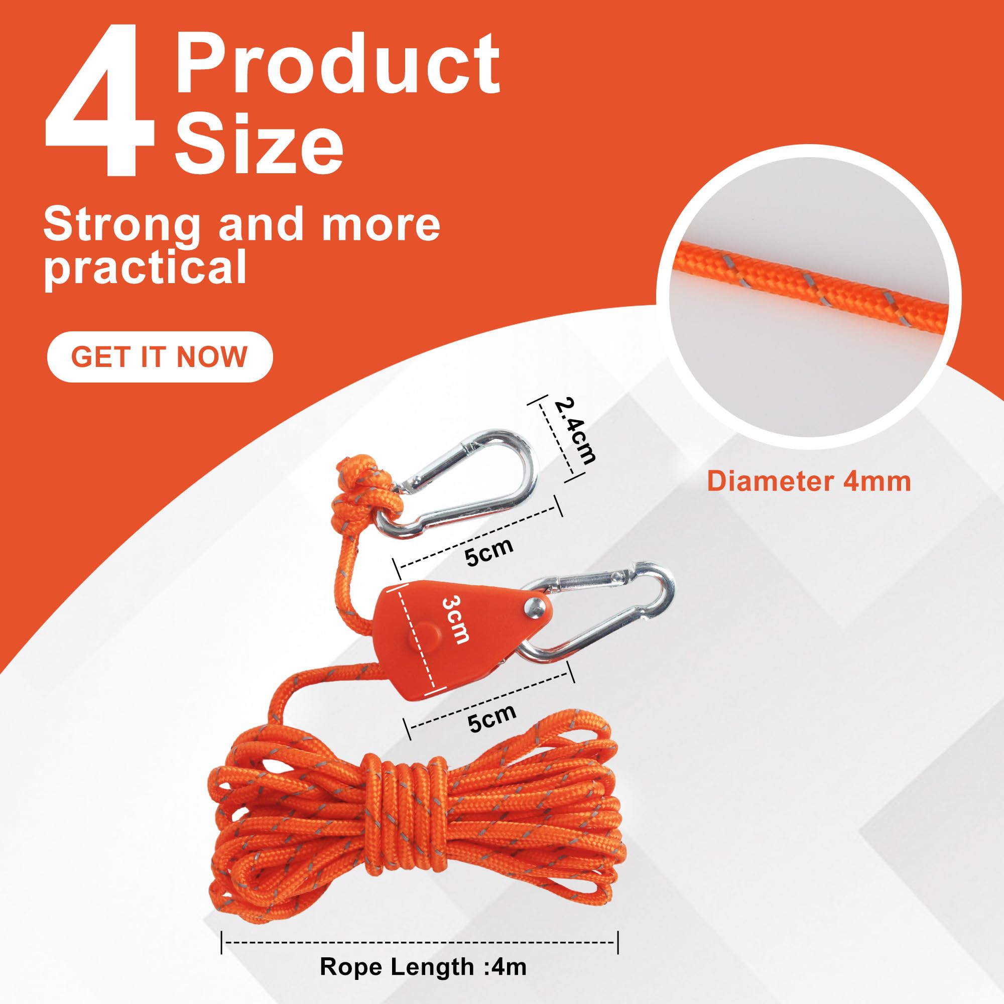 4 Stück Seilratsche 4m - Reflektierende Abspannseile Für Zelt Und Sonnensegel