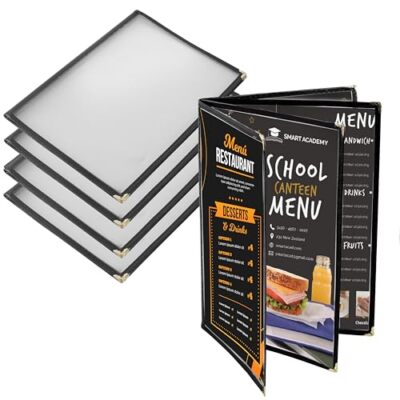 Perfekt für Gastronomie-Betriebe: Dieser professionelle Menübuchhalter von CIYODO macht deine Speisekarte zum echten Hingucker! Mit 4 Seiten und 8 transparenten Ansichten bietet er genug Platz für dein komplettes Angebot. Die A4-großen Hüllen (31,5x23,5x0,6cm) schützen deine Speisekarten vor Verschüttungen, Fettflecken und Abnutzung - so bleiben sie lange ansehnlich und lesbar. Einfach deine ausgedruckten Menüseiten einlegen und schon wirkt dein Restaurant, Café oder Bar um einiges professioneller. Die durchsichtigen Hüllen ermöglichen einen klaren Blick auf dein Angebot und lassen sich leicht reinigen. Praktisch für saisonale Änderungen oder Sonderangebote - einfach die Seiten austauschen! Ob für die Theke, den Tisch oder die Wand - dieser Menübuchhalter organisiert deine Speisekarte optimal und hinterlässt bei deinen Gästen einen bleibenden positiven Eindruck. Ein kleines Investment mit großer Wirkung für dein Business!