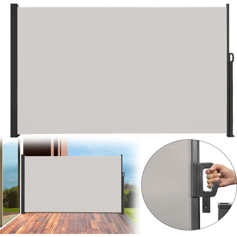 • Seitenmarkise 160x350cm Grau - Ausziehbarer Sichtschutz Für Balkon & Terrasse