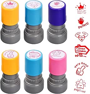 Mach die Hausaufgaben-Korrektur zum Spaß! Dieses 6-teilige Stempel-Set begeistert jeden Lehrer und motiviert die Schüler gleichermaßen. Die bunten Stempel zeigen verschiedene Emoticons, Daumen hoch und Häkchen - perfekt zum Loben und Ermutigen. Das Beste: Sie sind selbstfärbend und halten bis zu 2001 Abdrucke! Die ölbasierte Tinte ist absolut unbedenklich für Kinder und trocknet super schnell. Jeder Stempel hat eine praktische Kappe, damit die Tinte nicht austrocknet. In der transparenten Aufbewahrungsbox bleiben alle Stempel ordentlich zusammen. Perfekt für Grundschullehrer, aber auch für Eltern, die ihre Kinder zu Hause motivieren wollen. Einfach aufstempeln und schon strahlt jedes Kind über das ganze Gesicht! Super als Geschenk für Lehrer oder für den eigenen Gebrauch. Mach das Lernen bunter und fröhlicher!