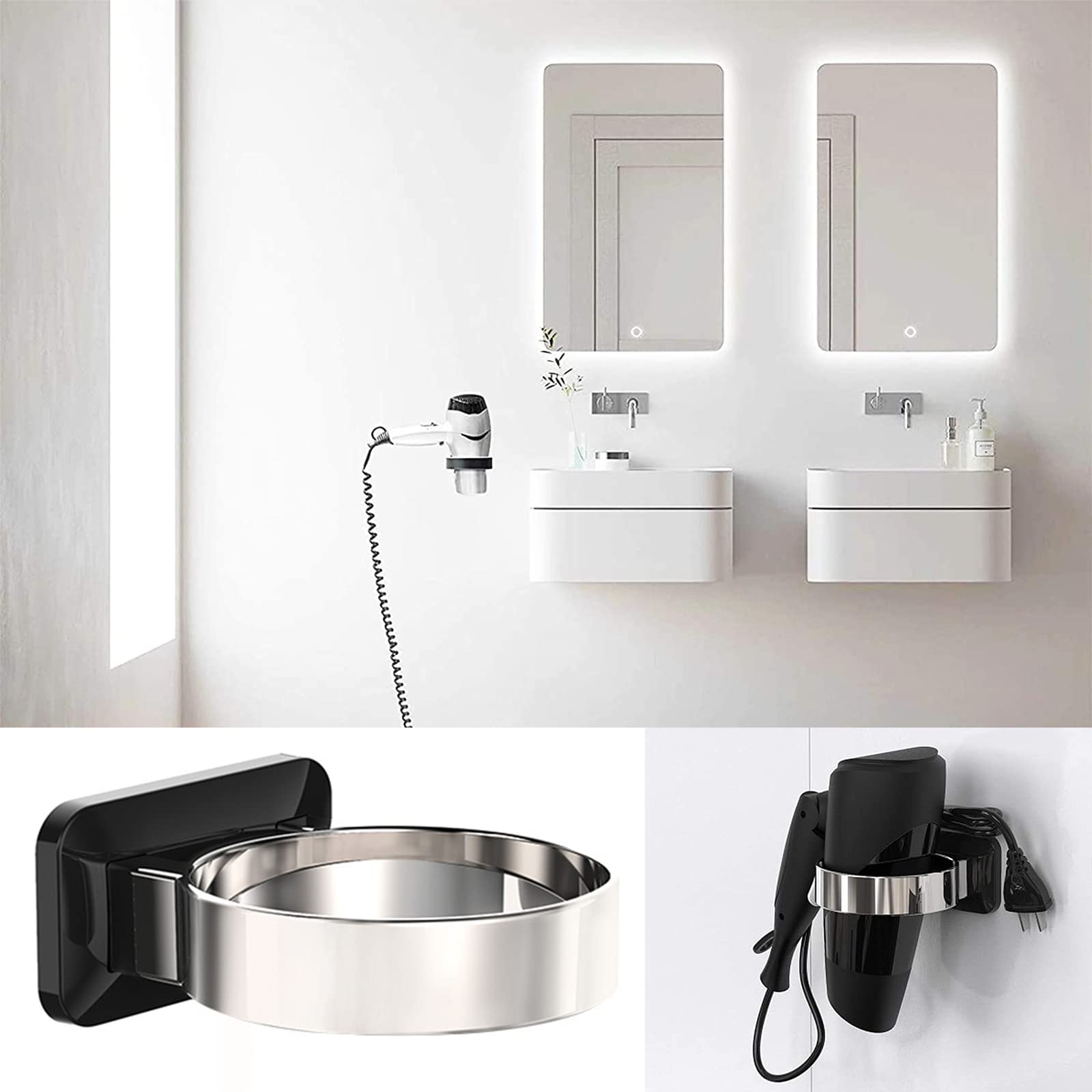 Endlich Ordnung im Bad! Dieser selbstklebende Haartrocknerhalter sorgt für System. Einfach auf glatte Flächen kleben - keine Bohrlöcher nötig. Hält sicher auf Fliesen, Glas, Metall oder Kunststoff. Mit praktischer Kabelhalterung für aufgeräumtes Aussehen. Durchmesser 3,35 Zoll - passt für die meisten Föns. Einfach Wand reinigen, Halter anbringen, 24 Stunden warten - fertig! Hinterlässt keine Spuren bei der Demontage. Perfekt für Bad, Küche oder Schlafzimmer. Spart Platz und sieht dabei noch gut aus. Aus hochwertigem ABS-Kunststoff - wasserfest und langlebig.