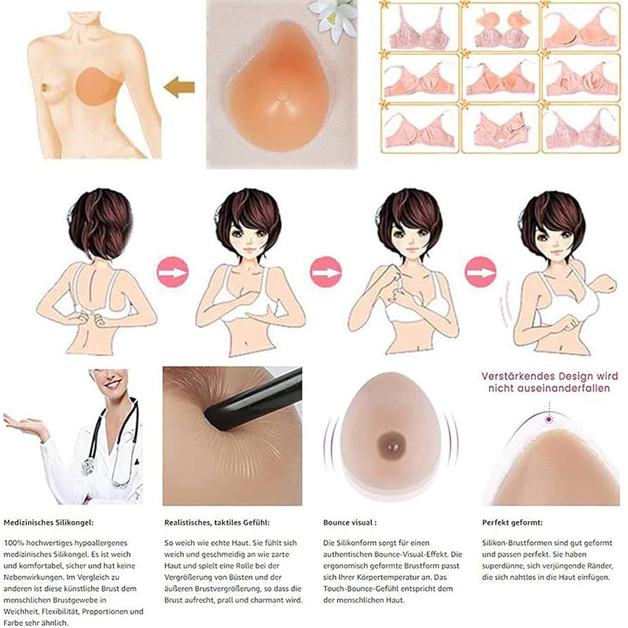Diese Silikonbrustprothesen fühlen sich an wie echt! Aus medizinischem Silikon gefertigt, sind sie weich, natürlich und tropfenförmig. Die selbstklebende Oberfläche hält sicher auf der Haut - einfach Folie abziehen und aufkleben. Oder steck sie einfach in deinen BH. Perfekt für Frauen nach Brust-OP, Crossdresser, Transgender oder Cosplay. Nach Gebrauch mit lauwarmem Wasser reinigen und in der mitgelieferten Diskret-Box aufbewahren. Die Brustwarzen sehen ultra-realistisch aus, und der atmungsaktive Rücken macht das Tragen angenehm. Tipp: Bei nachlassender Klebekraft einfach Spezialkleber verwenden oder mit BH-Tragelasche nutzen. Absolute Diskretion garantiert - niemand merkt was!