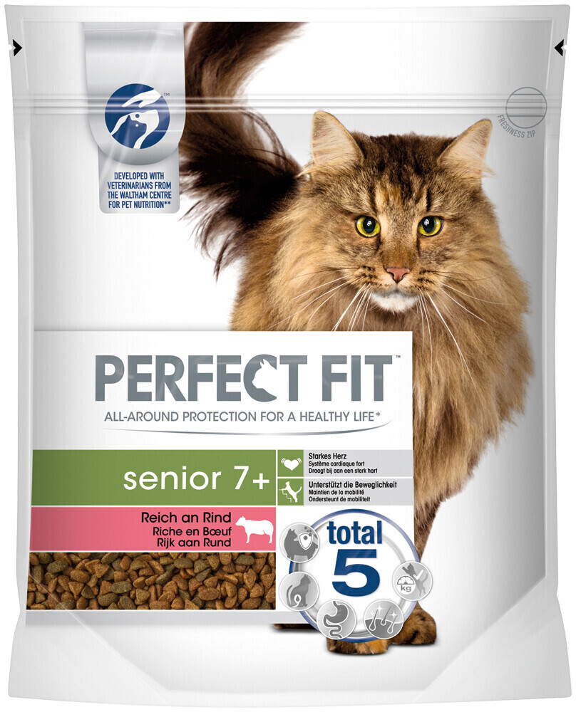 Deine Senior-Katze ab 7 Jahren verdient die beste Ernährung! PERFECT FIT Senior mit Huhn ist speziell auf die Bedürfnisse älterer Katzen abgestimmt. Die Total-5-Formel bietet Rundumschutz für fünf wichtige Gesundheitsbereiche: gesunde Verdauung, starke Abwehrkräfte, gesunde Harnwege, optimales Gewicht und schönes Fell. Mit 15% Huhn und natürlichen Omega-3-Fettsäuren unterstützt es die Gelenkgesundheit und Beweglichkeit deiner Katze. Das Trockenfutter ist mit Taurin angereichert, essenziell für ein starkes Herz, und enthält Antioxidantien für gesunde Zellfunktionen. Entwickelt von Tierärzten und Ernährungsspezialisten, gibt es deiner Katze alles, was sie für ein aktives und gesundes Seniorenleben braucht. Im praktischen 2x7kg Vorratspack hast du lange Zeit Ruhe. Deine Katze wird das schmackhafte Futter lieben - ob Stubentiger oder Freigänger!
