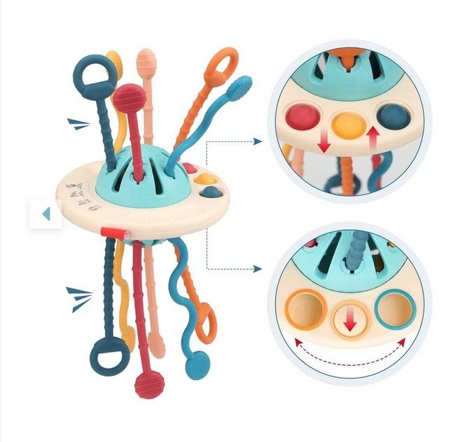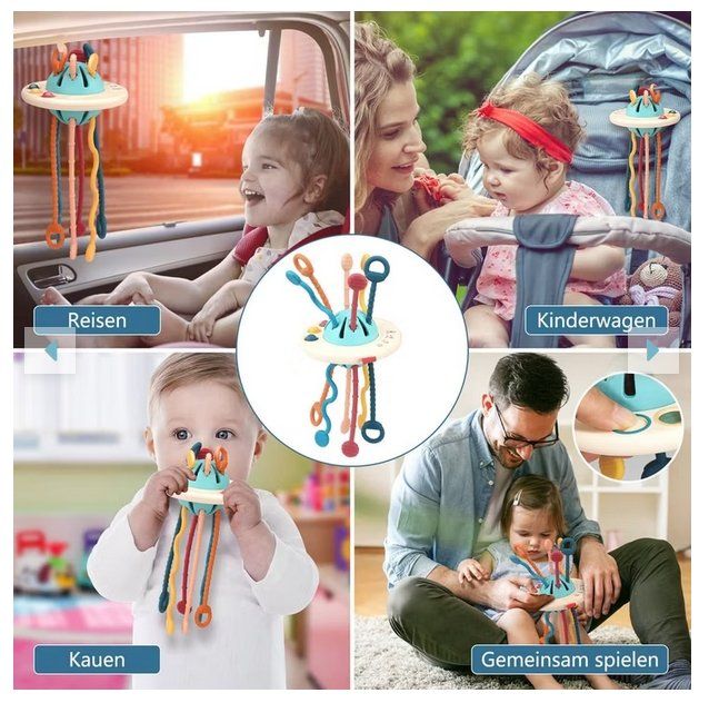 Das perfekte Geschenk für die Baby-Party! Dieses Montessori-Set fördert die Entwicklung deines Kleinen ab 3 Monaten. Enthalten: Silikon-Zugspielzeug mit Blasen zum Drücken, sensorische Tissue-Box mit knisternden Tüchern, Stoffbuch mit Tieren, Rasselbälle und 15 Meilenstein-Karten zum Festhalten besonderer Momente. Alles fördert Feinmotorik, Hand-Augen-Koordination und Sinneswahrnehmung. Die hellen Farben unterstützen die visuelle Entwicklung. Aus hautfreundlichen Materialien - sicher für dein Baby. Ein educatives Spielerlebnis!