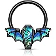Gruselig-schöner Halloween-Schmuck! Dieser Septum Ring mit Fledermaus- und Sarg-Design ist perfekt für alle, die es etwas anders mögen. Aus 316L Chirurgenstahl - nickel- und bleifrei, hypoallergen und wasserfest. Ideal für empfindliche Haut. Größe: 16G (1,2 mm Stärke) mit 10 mm Innendurchmesser - gängige Größe für Septum- und Ohr-Piercings. Das funkelnde Design bringt einen einzigartigen Fashion-Sinn. Bequem zu tragen und auffällig schön. Vielseitig verwendbar als Septum, Daith, Helix, Conch oder Tragus Piercing. Perfektes Geschenk für Frauen und Männer zu Halloween, Partys, Weihnachten oder anderen besonderen Anlässen. Zeige deinen individuellen Style und falle positiv auf! Ein echter Hingucker für alle, die das Besondere lieben.