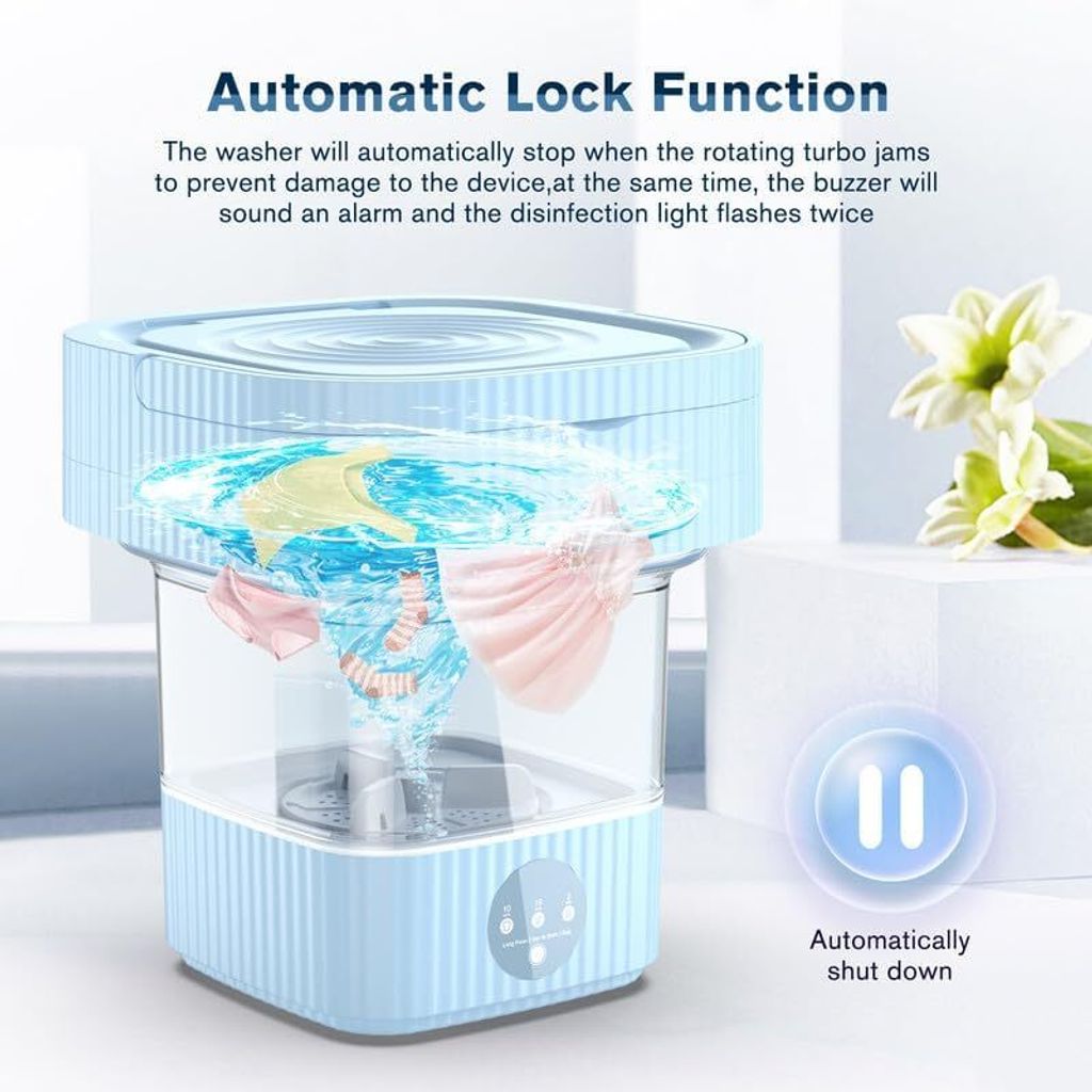 Kennst du das? Im Studentenwohnheim, im Wohnmobil oder auf Reisen - und keine Waschmaschine in Sicht? Diese süße Mini-Waschmaschine löst all deine Probleme! Mit 8 Litern Fassungsvermögen wäscht sie perfekt Unterwäsche, Socken oder sogar Masken. Super praktisch mit USB-Anschluss - einfach an Powerbank oder Steckdose anschließen und los geht's! Die Ultraschall-Funktion macht die Wäsche richtig sauber, und das intermittierende Drehen schont die Kleidung. Nur 5 Watt Leistung - spart richtig Energie! Perfekt für alle, die wenig Platz haben: im Wohnheim, Camper, Hotelzimmer oder einfach in der kleinen Wohnung. Maße: 21x21x19cm - passt in jede Ecke! Aus ABS-Material, rostfrei und langlebig. Timer für 6 oder 15 Minuten - je nachdem, wie schmutzig die Wäsche ist. Einfach befüllen, Timer stellen und entspannt zurücklehnen!