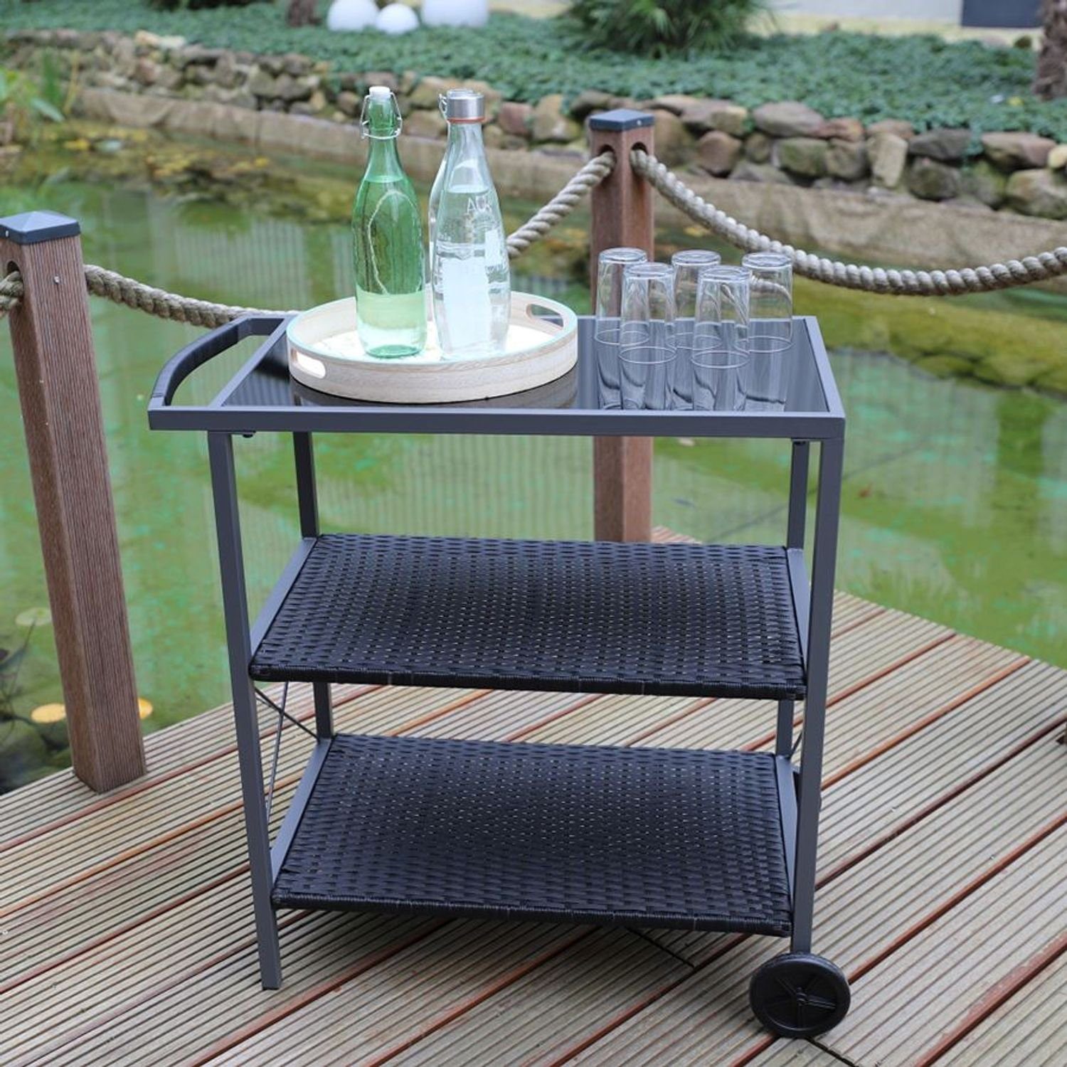 Stylish und praktisch - der BURI Servierwagen ist dein vielseitiger Helfer für drinnen und draußen! Mit seinen schicken anthrazitfarbenen Oberflächen passt er perfekt in moderne Wohnungen und Gärten. Perfekte Maße: 45x45x64cm - kompakt genug für kleine Räume, aber groß genug für alles Nötige. Extrem mobil: 4 leichtgängige Rollen machen ihn zum flexiblen Begleiter - einfach dorthin schieben, wo er gerade gebraucht wird. Vielseitig nutzbar: Als Servierwagen für Getränke und Snacks, Beistelltisch im Wohnzimmer, Ablage für Zeitschriften oder praktischer Küchenwagen. Hochwertige Verarbeitung: Von der deutschen Marke BURI - bekannt für gute Qualität und durchdachtes Design. Besonders stabil: Hält auch stärkerer Belastung stand - perfekt für Partys oder den täglichen Gebrauch. Einfache Montage: Schnell zusammengebaut und sofort einsatzbereit. Ob auf dem Balkon, im Garten, Wohnzimmer oder in der Küche - dieser Servierwagen ist immer zur Stelle! Mach dir das Leben leichter mit diesem praktischen Mobiliar - bestell jetzt und genieße die Flexibilität!