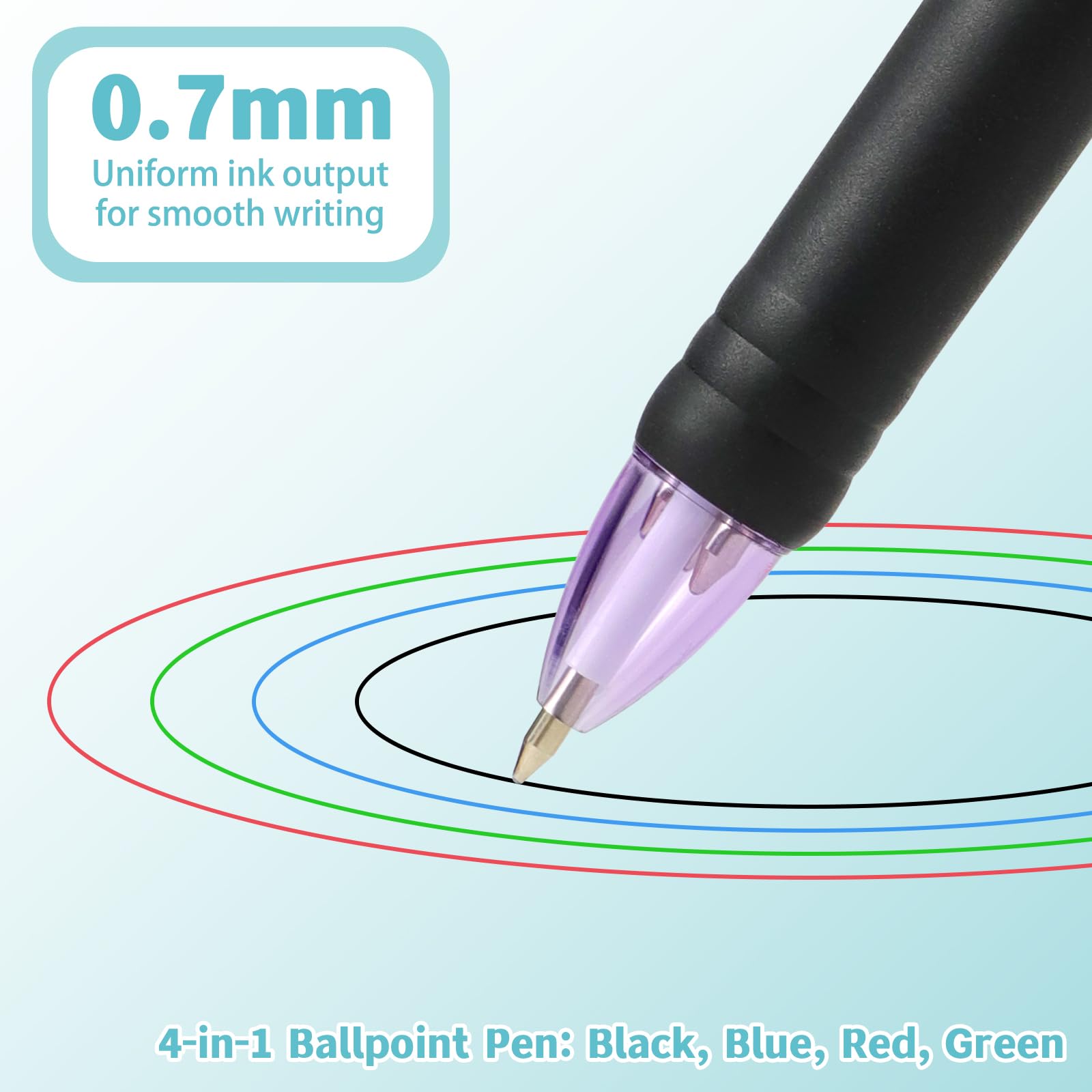 Praktisch und farbenfroh! Dieses OWill 4-Farben Kugelschreiber Set enthält 11 Stifte mit je vier Farben: Schwarz, Blau, Rot und Grün. Perfekt zum Schreiben, Markieren und Organisieren. Mit 1,0 mm Feinspitze für ein glattes Schreiberlebnis und gleichmäßigen Tintenfluss. Das praktische Druckmechanik-Design ermöglicht schnellen Farbwechsel mit nur einem Klick. Jeder Stift hat einen Taschenclip für einfachen Transport. Ideal für Büro, Schule, Studium oder zu Hause. Perfekt zum Erstellen von farbigen Notizen, Mind-Maps oder zum Ausmalen. Das 11er-Set ist großzügig bemessen - ideal zum Teilen mit Kollegen, Klassenkameraden oder für den eigenen Vorrat. Einfach in die Hand nehmen, Farbe auswählen und losschreiben! Macht das Schreiben bunter und organisierter.