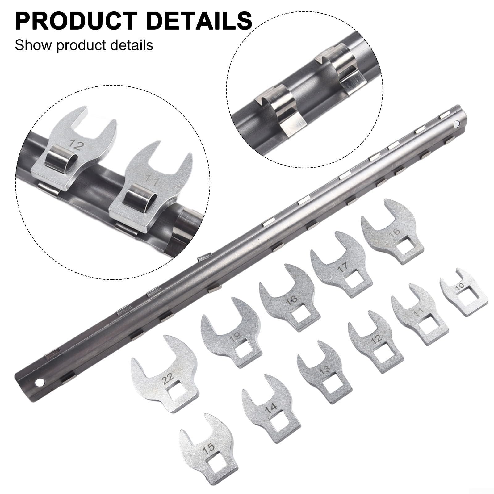 Dieses 10-teilige Hahnenfußschlüssel-Set ist ein echter Lebensretter bei kniffligen Autoreparaturen! Mit Größen von 10-22mm bist du für die meisten Muttern und Schrauben am Auto bestens gerüstet. Der 3/8\ Antrieb passt zu allen gängigen Knarren und Verlängerungen. Aus robustem verchromtem Karbonstahl, der hohen Temperaturen und Verschleiß standhält. Das offene Ende macht sie super für enge, schwer zugängliche Stellen, wo normale Schlüssel nicht hinkommen. Jeder Schlüssel ist klar mit seiner Größe markiert - kein langes Suchen mehr! Perfekt für die Werkstatt, Hobby-Schrauber oder Profis. Ob Motorraum, Radwechsel oder allgemeine Reparaturen - mit diesem Set hast du immer das richtige Werkzeug zur Hand. Spart Zeit und Nerven, denn diese Schlüssel packen wirklich zu, wo andere versagen!