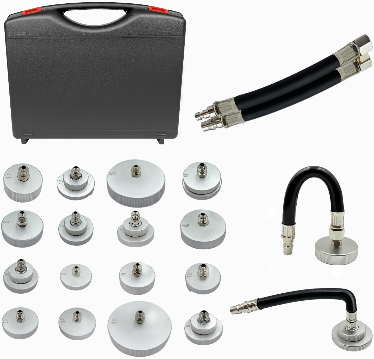 Bremsen entlüften war noch nie so einfach! Dieses 10-teilige Set von VZU macht die Bremsenwartung zum Kinderspiel. Perfekt für Autos, LKWs, Motorräder und Baufahrzeuge. Die blauen Kunststoff-Adapter passen für verschiedene Bremsentlüftungsventile. So entfernst du Luftblasen aus dem Bremssystem schnell und effizient - für optimale Bremsleistung und mehr Sicherheit. Kein teurer Werkstattbesuch mehr nötig! Einfach anschließen, entlüften und fertig. Nach der Arbeit alle Anschlüsse und Dichtungen prüfen und die Bremsfunktion testen. Spare Zeit und Geld mit diesem professionellen Werkzeug-Set. Für jeden Kfz-Besitzer ein absolutes Must-have! Fahre sicher mit perfekt entlüfteten Bremsen.