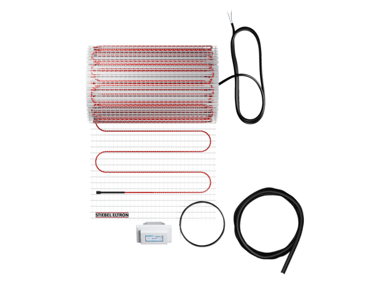 Wohlfühlwärme von unten! Dieses komplette Fußbodenheizungs-Set von STIEBEL ELTRON macht kalte Böden zur gemütlichen Wohlfühloase. Mit 3m² Fläche und 100W/m² Leistung ideal für mittlere Räume wie Badezimmer, Flur oder Wohnzimmer. Speziell entwickelt für Weichbodenbeläge wie Teppich, Vinyl oder Kork - sowohl im Neubau als auch bei Renovierungen perfekt einsetzbar. Die selbstklebende Heizmatte mit aufgenähtem Heizleiter garantiert gleichmäßige Wärmeverteilung. Einfache Verlegung dank mitgeliefertem Temperaturregler, Leerrohr und detaillierter Montageanleitung. Spart Energie durch gezielte Beheizung nur der genutzten Flächen. Deutsche Qualität von STIEBEL ELTRON - für behagliche Wärme an kalten Tagen. Fachinstallation empfohlen!
