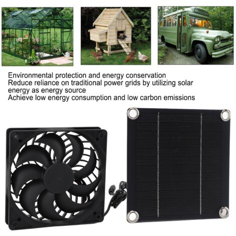 Mit zwei Ventilatoren und 18V Leerlaufspannung ist es stark genug für Gewächshäuser, Hühnerställe, Tierhäuser oder Wohnmobil-Dächer.