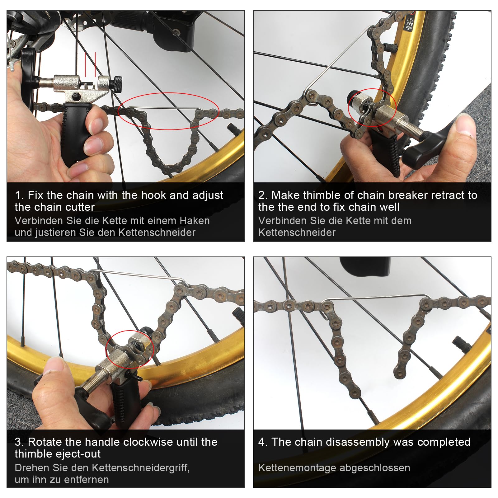 AURIVEE Kettennieter Set 11-in-1 - Für 6-12 Gang Fahrräder Mit Kettenschloss Zange