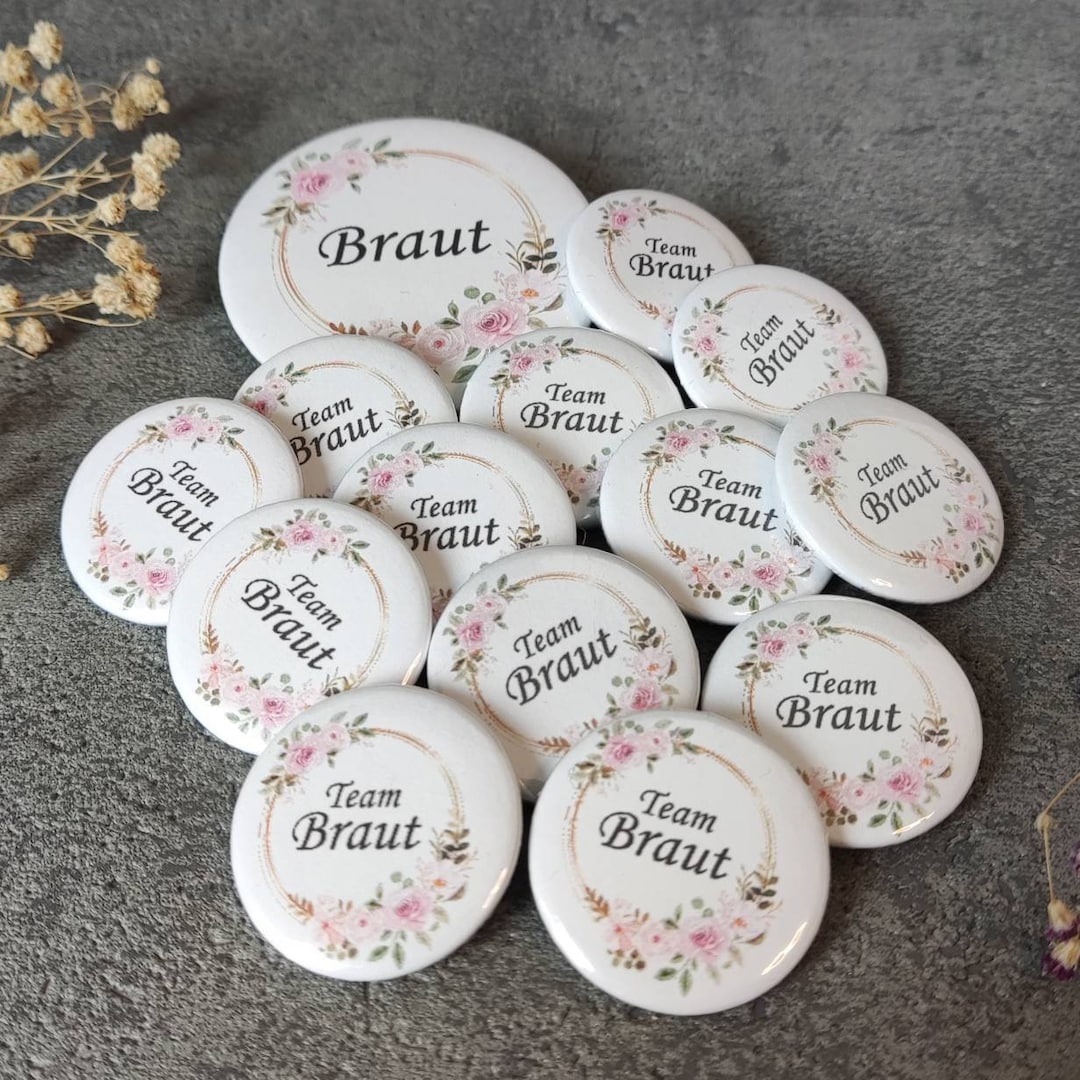 Perfekt für den perfekten Junggesellinnenabschied! Dieses süße Button-Set besteht aus 1 weißen Anstecker für die Braut und 11 rosa Buttons für das Braut-Team. So sieht jeder sofort, wer zur Crew gehört! Die Buttons sind aus hochwertigen Materialien gefertigt, die Farben verblassen nicht und sie halten ewig. Mit praktischem Sicherheitsverschluss lassen sie sich super einfach an jedem Outfit befestigen - ob an Bluse, Jacke oder Tasche. Und nach der Party kannst du sie als süße Erinnerung aufbewahren. Nicht nur für den JGA super, sondern auch für Hochzeiten, Mädelsabende oder jede andere besondere Feier. Macht jede Party gleich viel persönlicher und lustiger! Einfach verteilen, anstecken und die Stimmung ist perfekt. Deine Mädels werden sie lieben!
