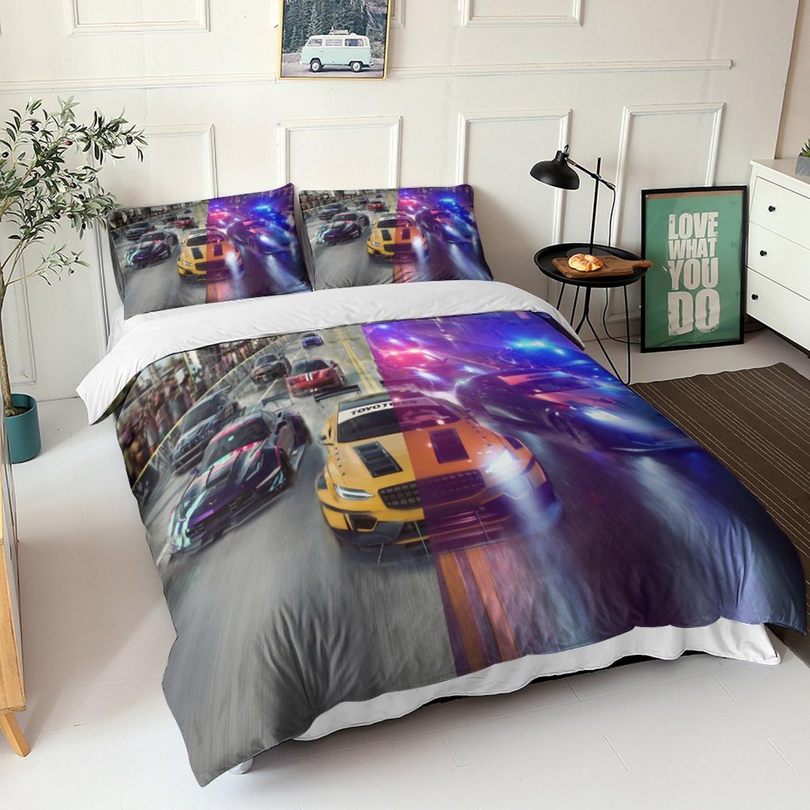 Wow, was für ein cooles Bettwäsche-Set für kleine Rennfahrer! Dein Kind wird sich freuen, jeden Abend in ein Bett voller actiongeladener Rennautos einzutauchen. Das Set besteht aus superweicher Mikrofaser - total kuschelig und dabei richtig pflegeleicht. Einfach in die Waschmaschine stecken, und schon ist es wieder sauber, ohne Bügeln! Mit den praktischen Druckknöpfen bleibt die Decke sicher an Ort und Stelle. Das Set enthält 1 Bettbezug (135x200 cm) und 1 Kissenbezug (48x75 cm) - perfekt für ein Einzelbett. Die Farben bleiben auch nach häufigem Waschen schön kräftig, und das Material ist knitterfrei. Ideal für Kinder mit Allergien, da es hautfreundlich und umweltfreundlich ist. Ob für Jungs, Mädchen oder Teens - dieses Rennsport-Design begeistert jeden Nachwuchs-Rennfahrer! Ein tolles Geschenk zum Geburtstag oder einfach so, um das Kinderzimmer in eine Rennstrecke zu verwandeln. Dein Kind wird dich lieben dafür!